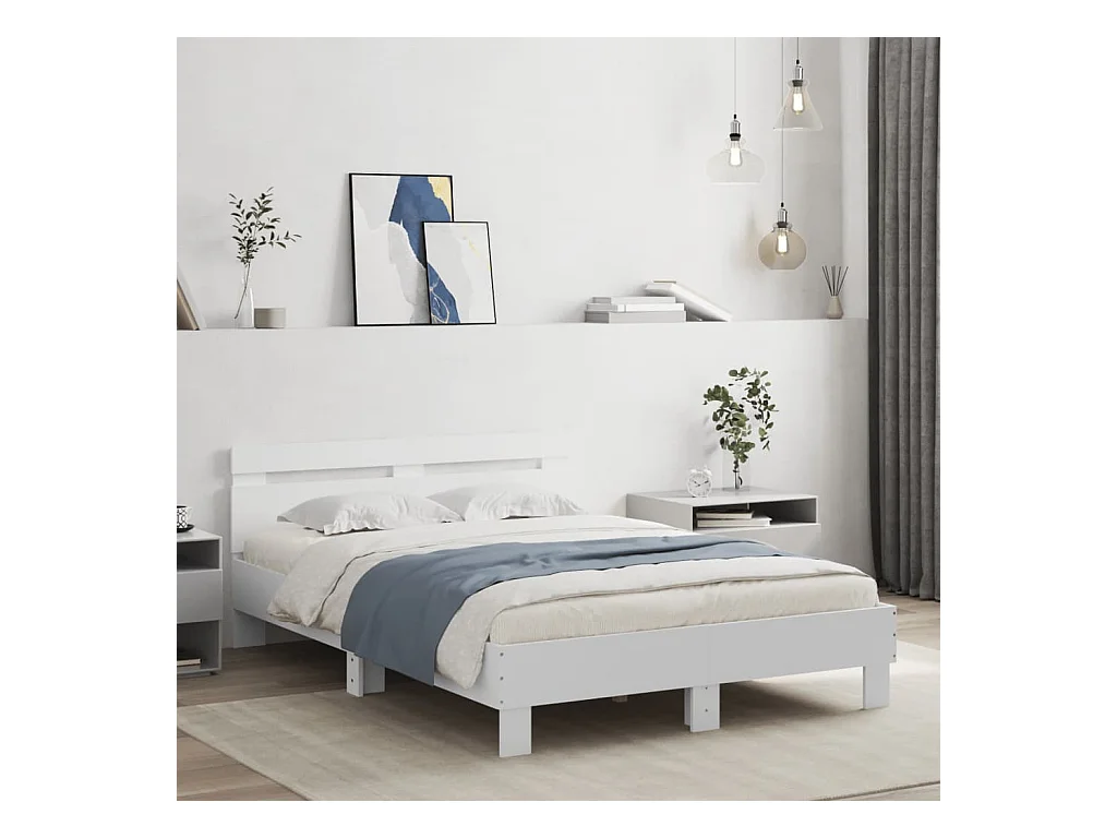 Cadre de lit avec tête de lit et LED blanc 120x200