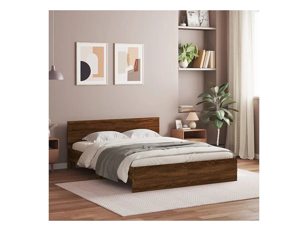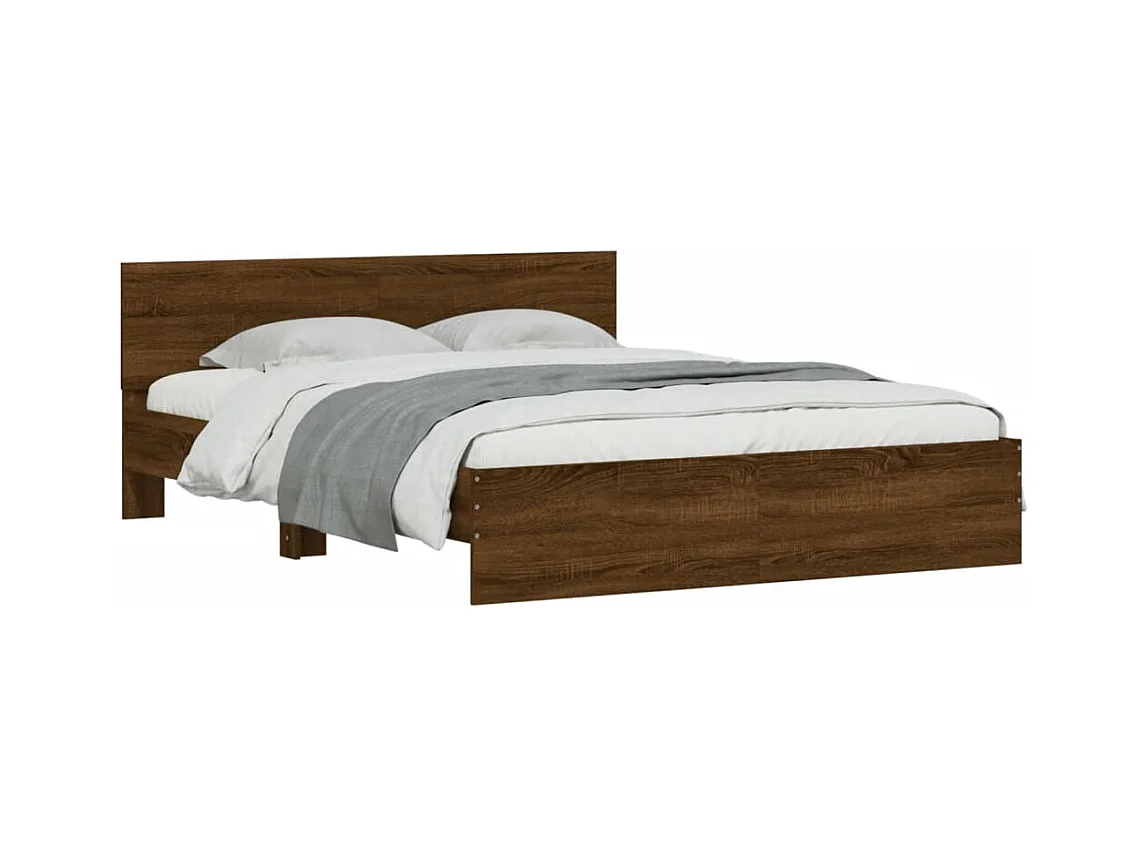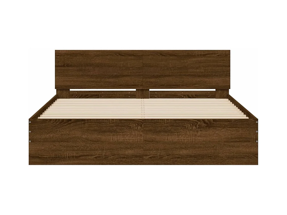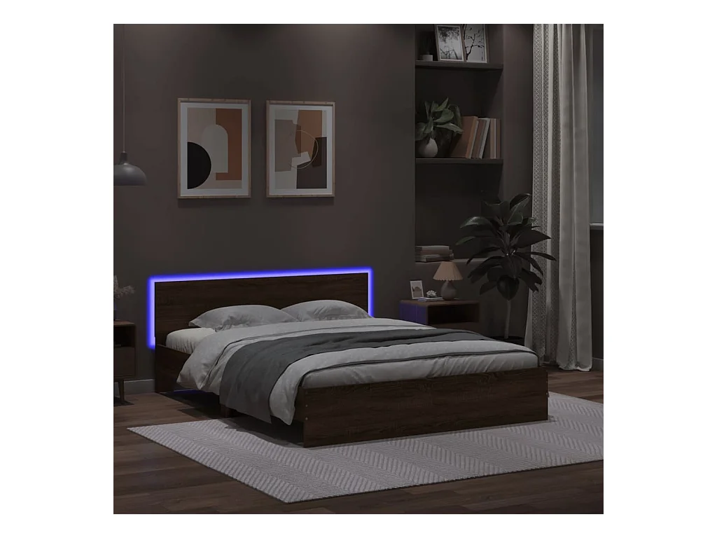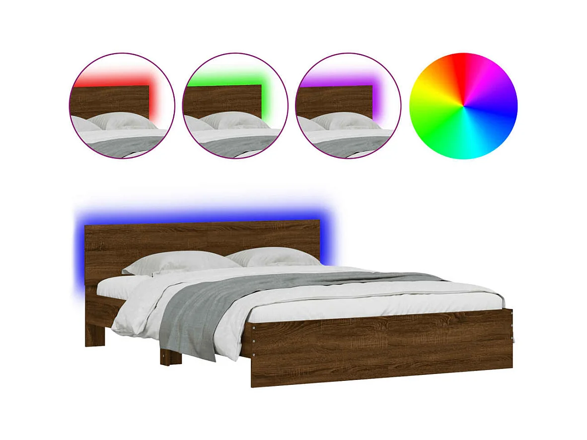 Cadre de lit avec tête de lit et LED chêne marron 160x200