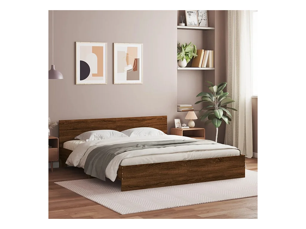 Cadre de lit avec tête de lit et LED chêne marron 200x200