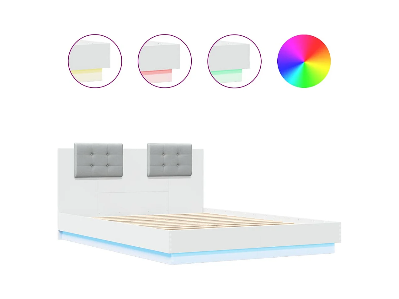 Cadre de lit avec tête de lit et lumières LED blanc 140x200