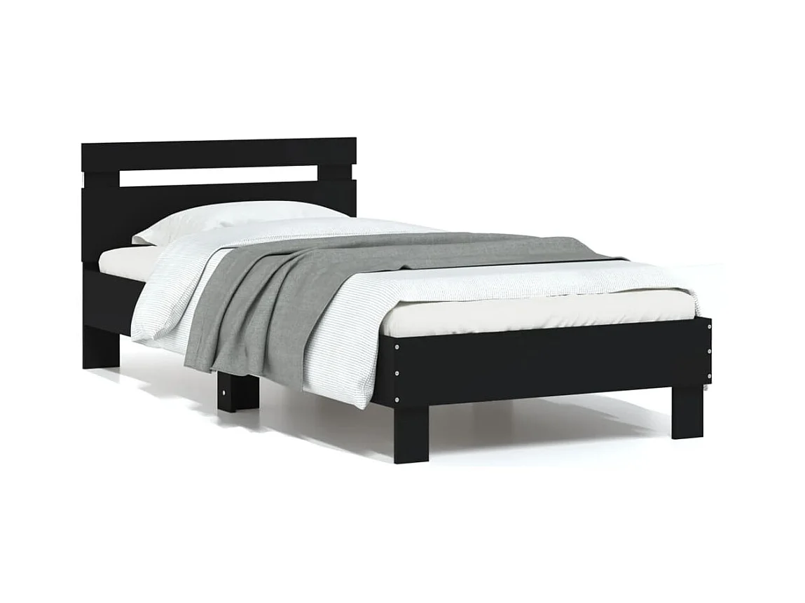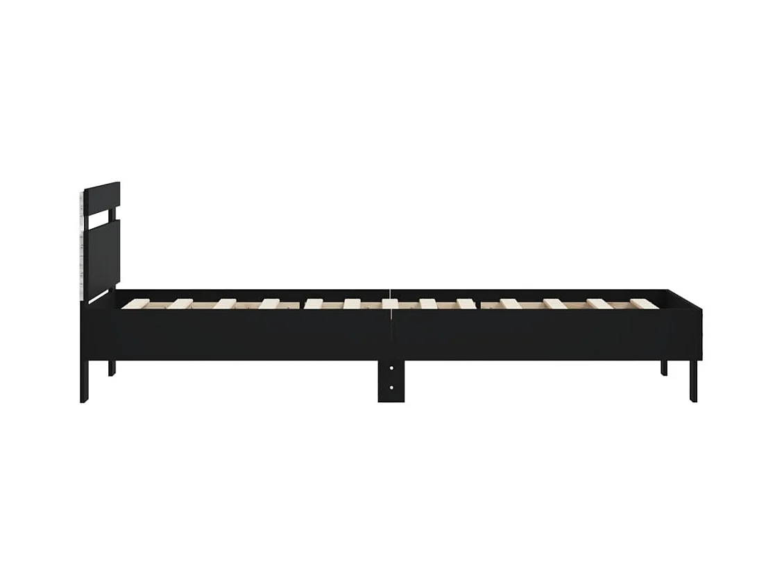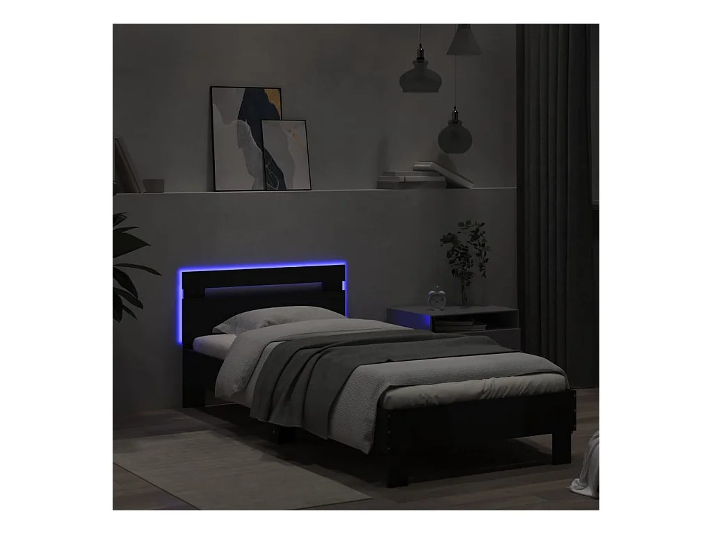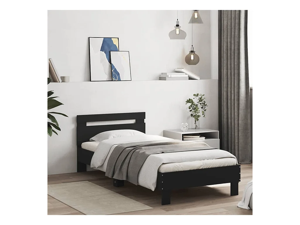 Cadre de lit avec tête de lit et lumières LED noir 75x190