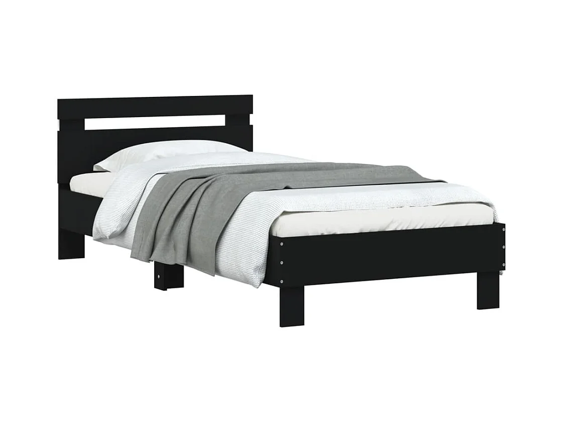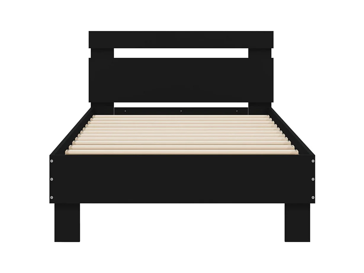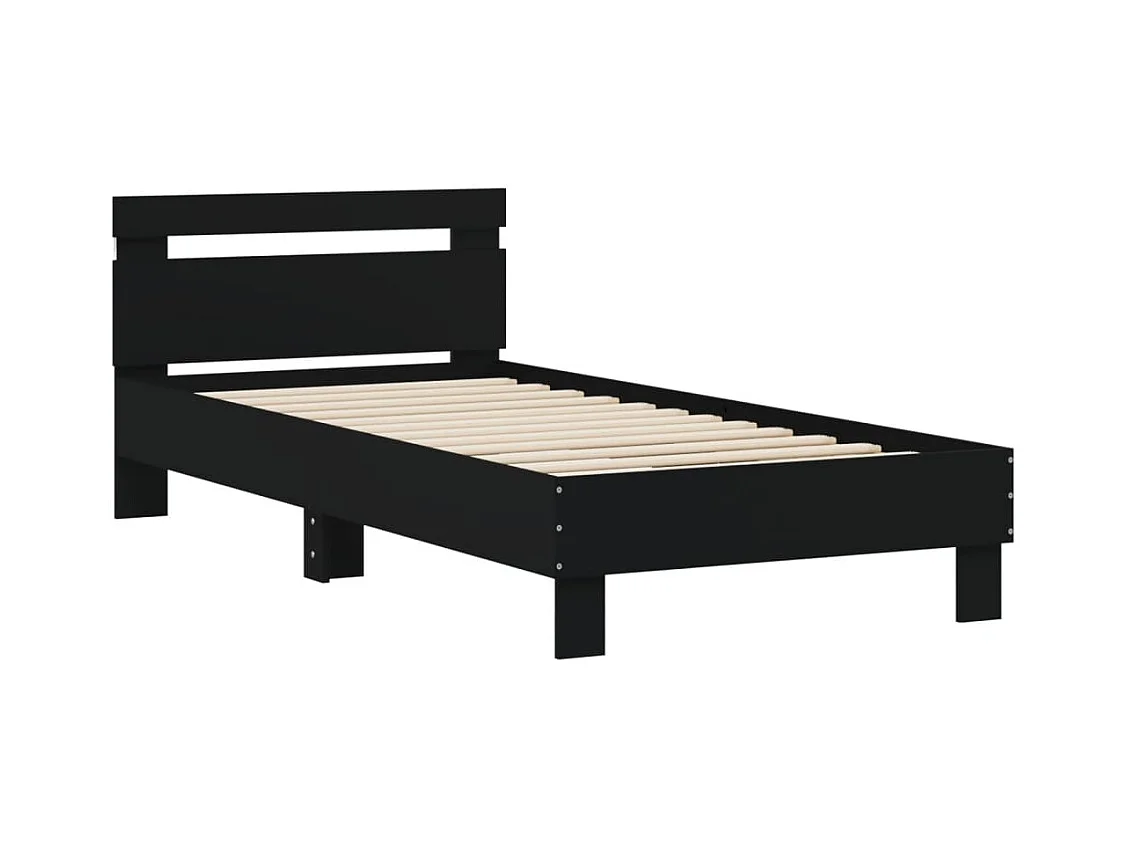 Cadre de lit avec tête de lit et lumières LED noir 75x190