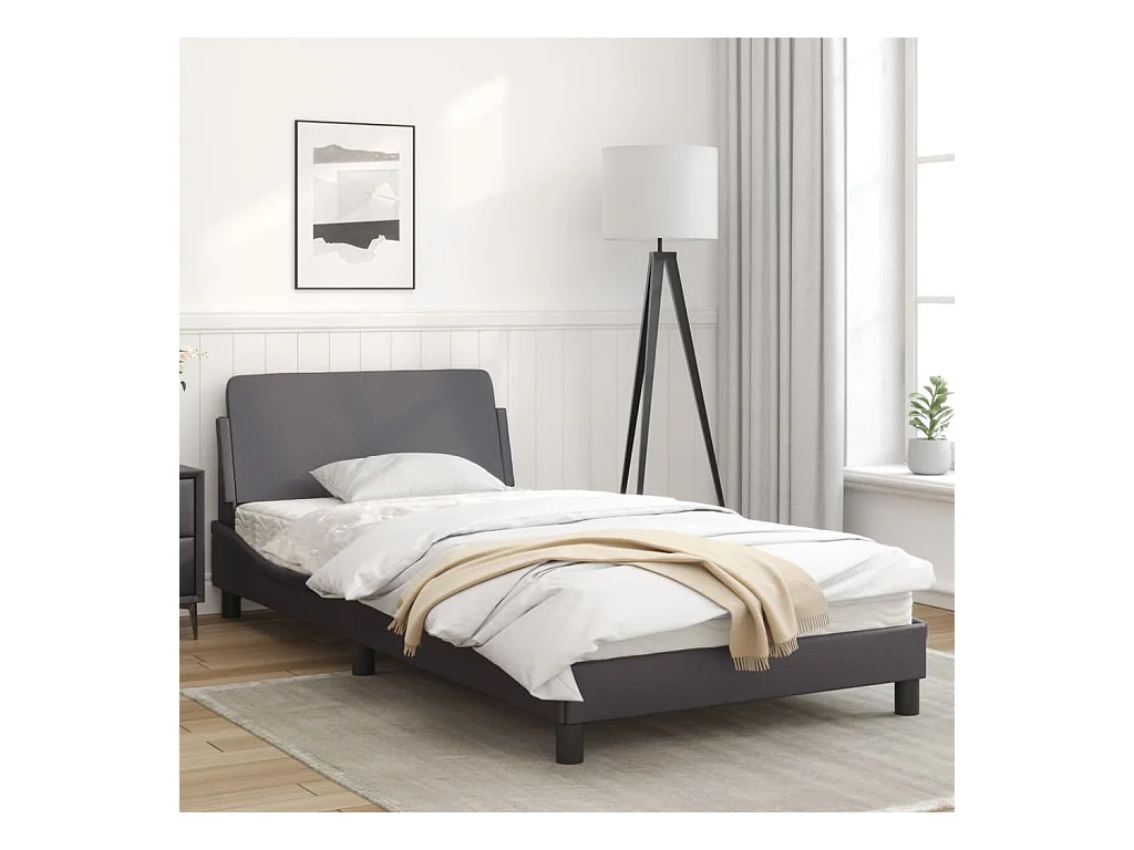 Cadre de lit avec tête de lit Gris 100x200 Similicuir