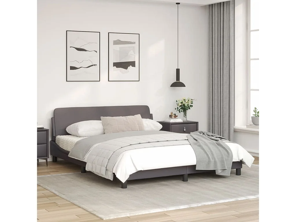 Cadre de lit avec tête de lit Gris 160x200 Similicuir