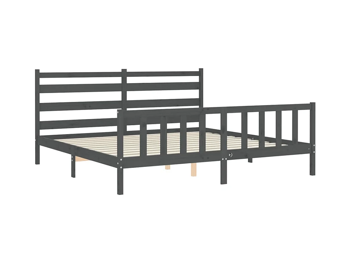 Cadre de lit avec tête de lit gris 200x200 bois massif