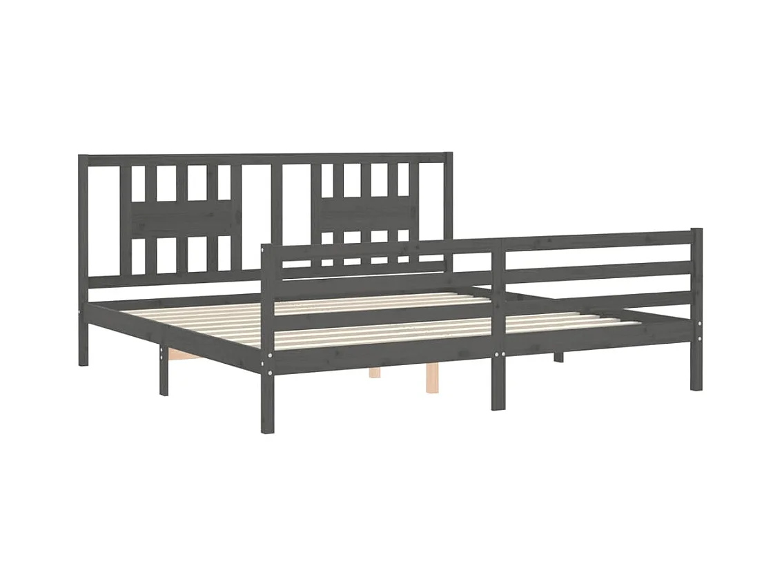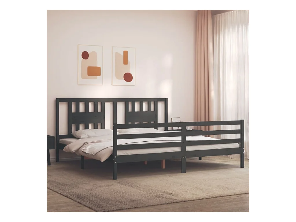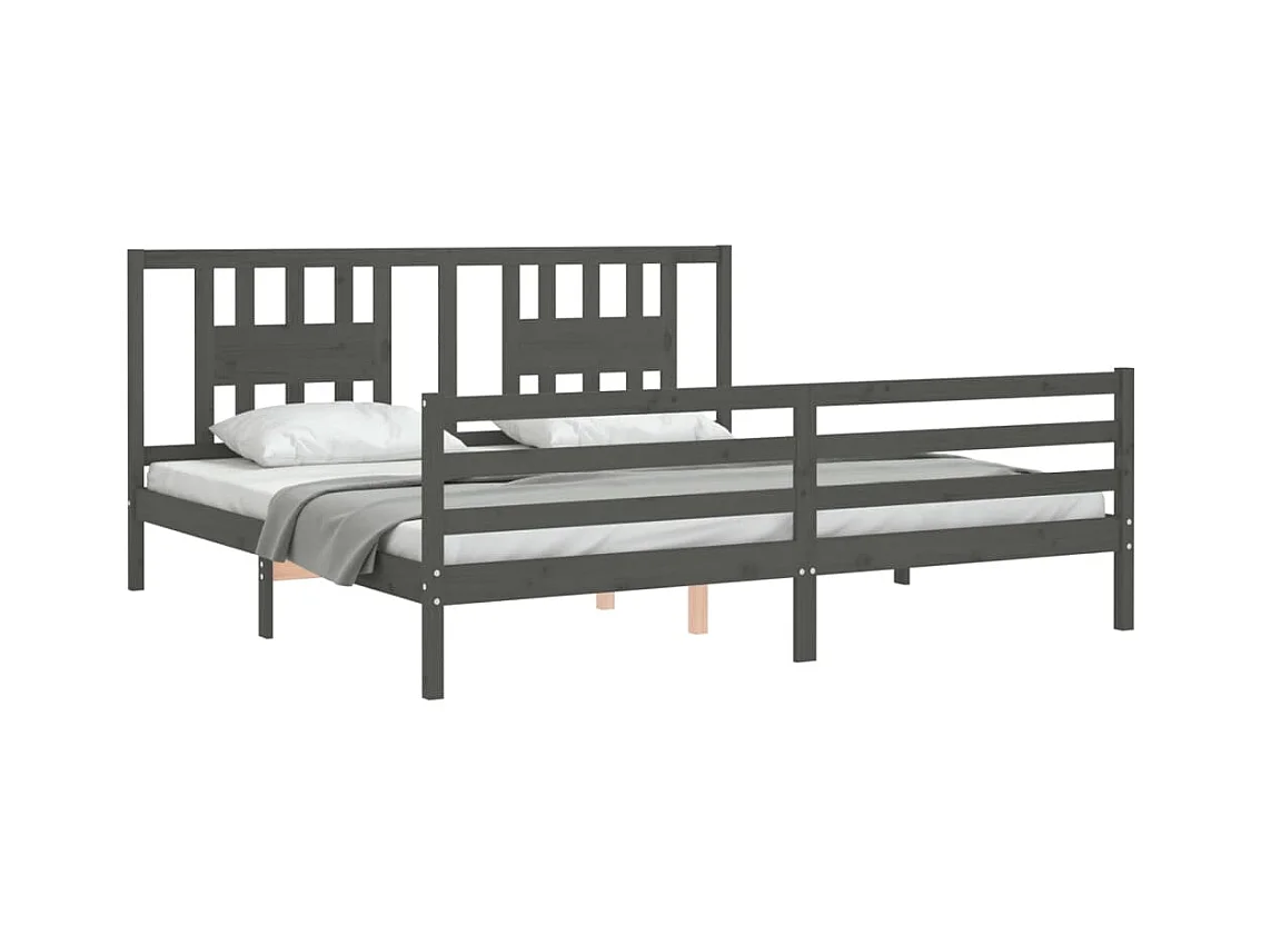 Cadre de lit avec tête de lit gris 200x200 bois massif