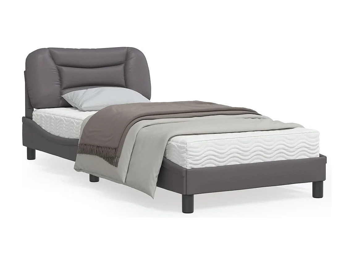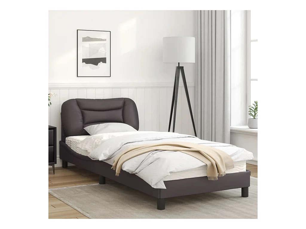 Cadre de lit avec tête de lit Gris 90x200 Similicuir