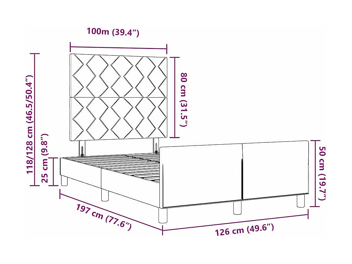 Cadre de lit avec tête de lit Gris foncé 120 x 190 cm Velours