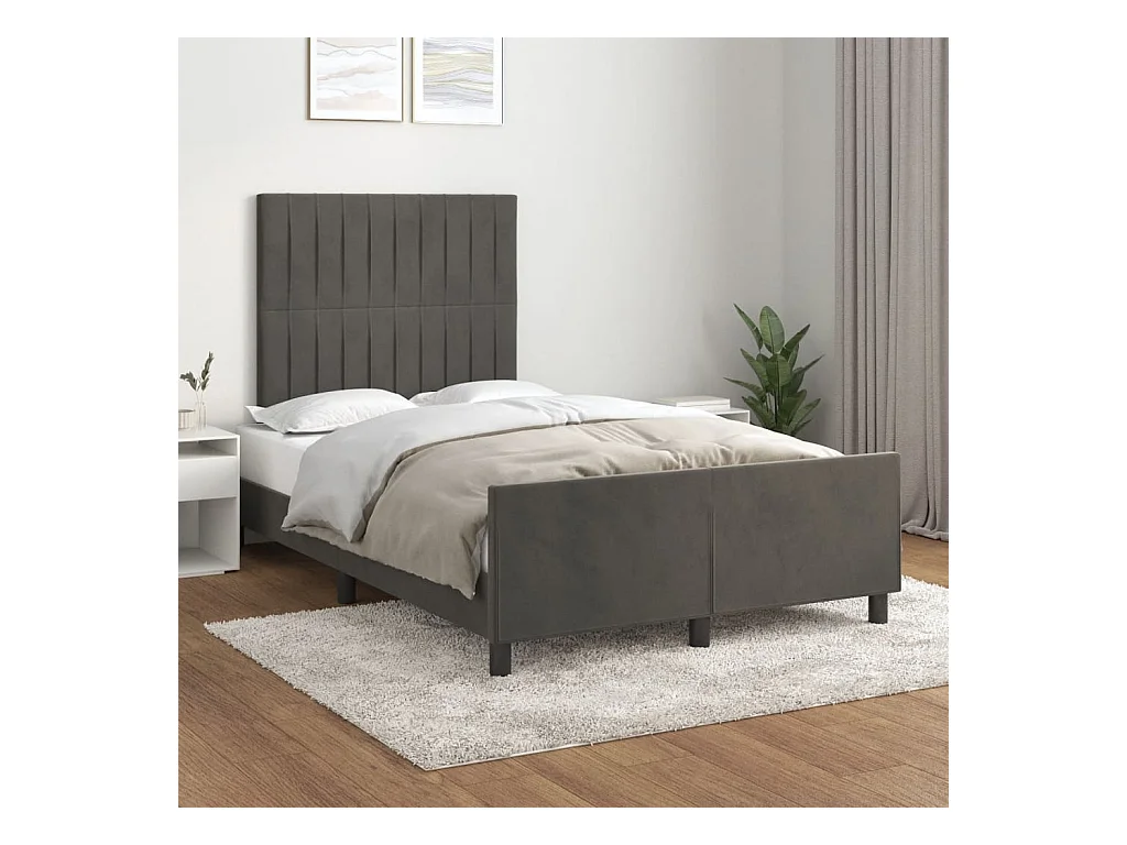 Cadre de lit avec tête de lit gris foncé 120x190 velours