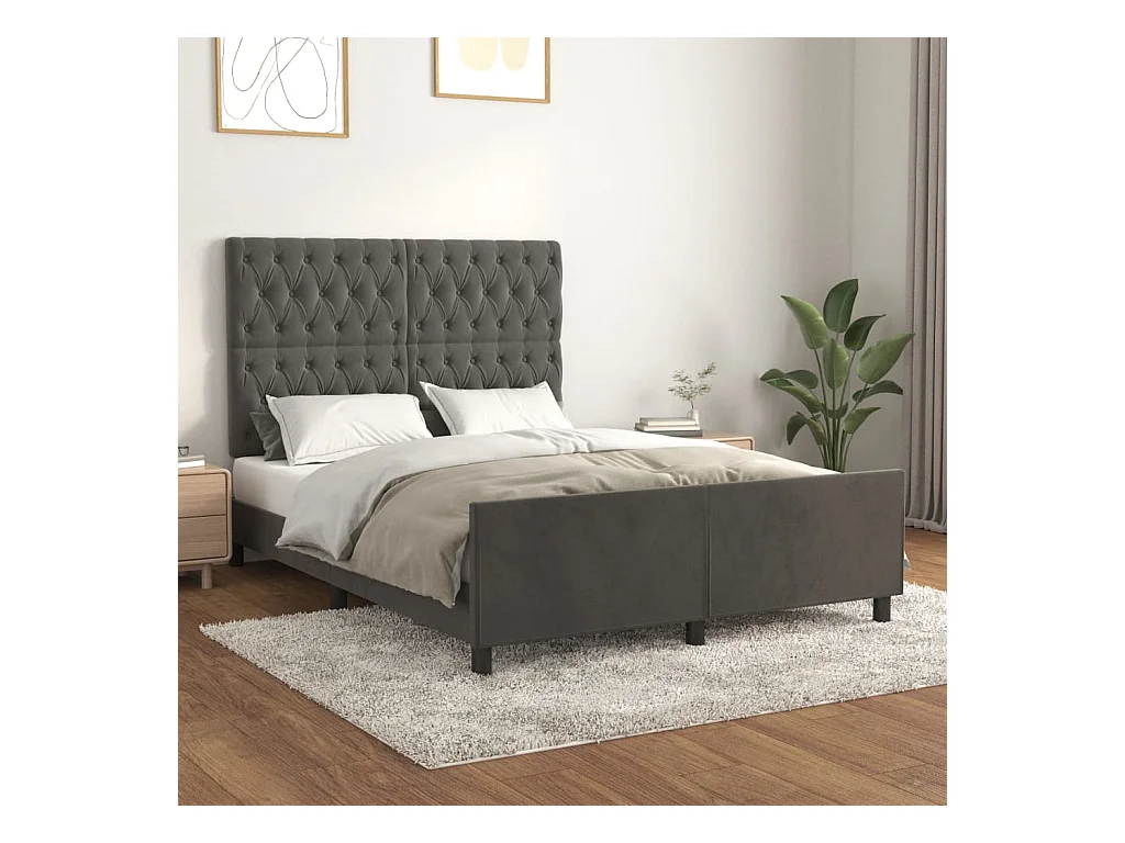 Cadre de lit avec tête de lit Gris foncé 140x200 Velours