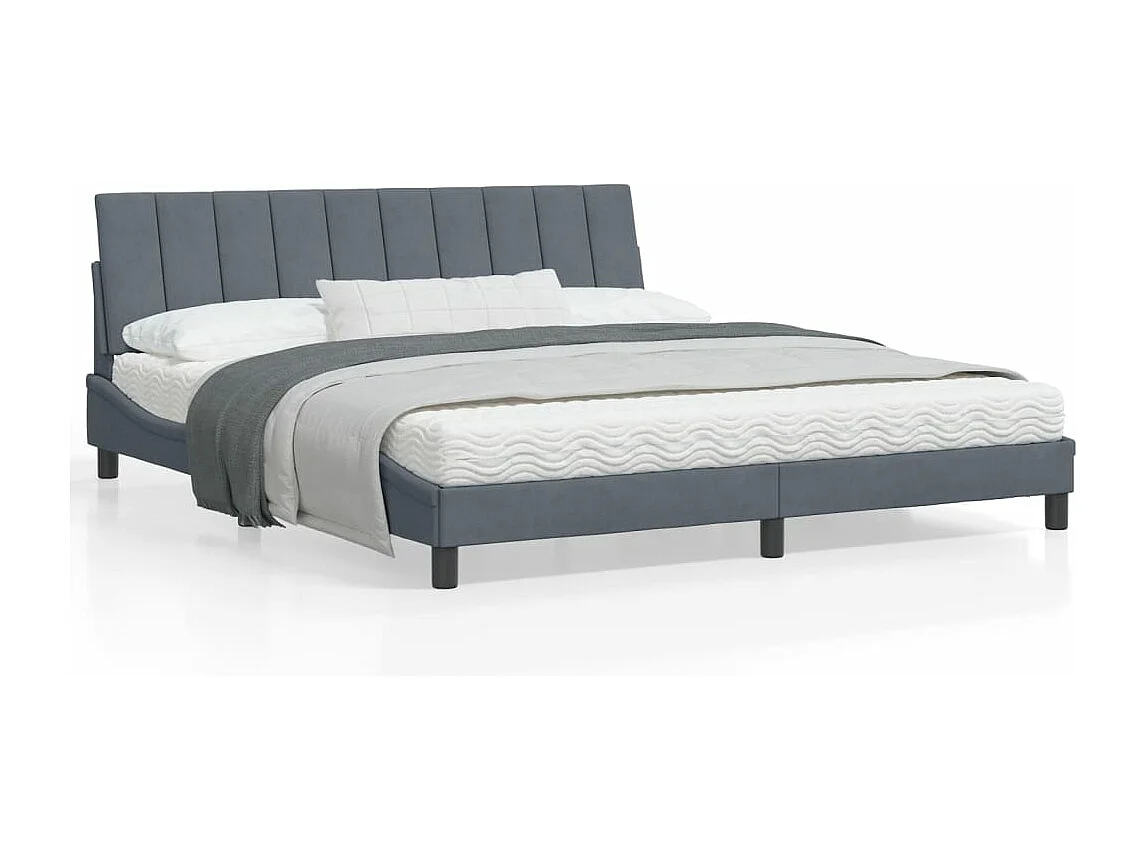 Cadre de lit avec tête de lit Gris foncé 180x200 Velours