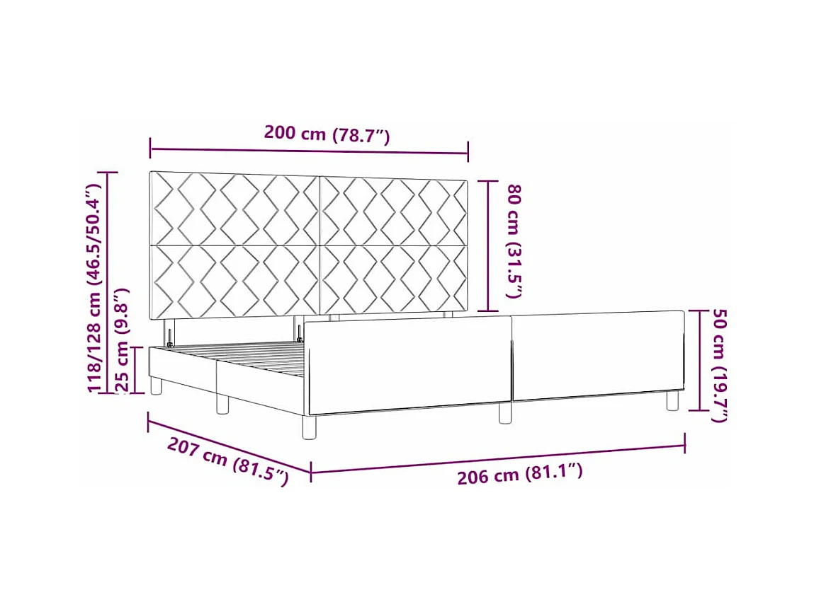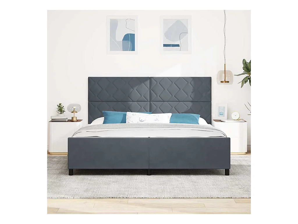 Cadre de lit avec tête de lit Gris foncé 200 x 200 cm Velours