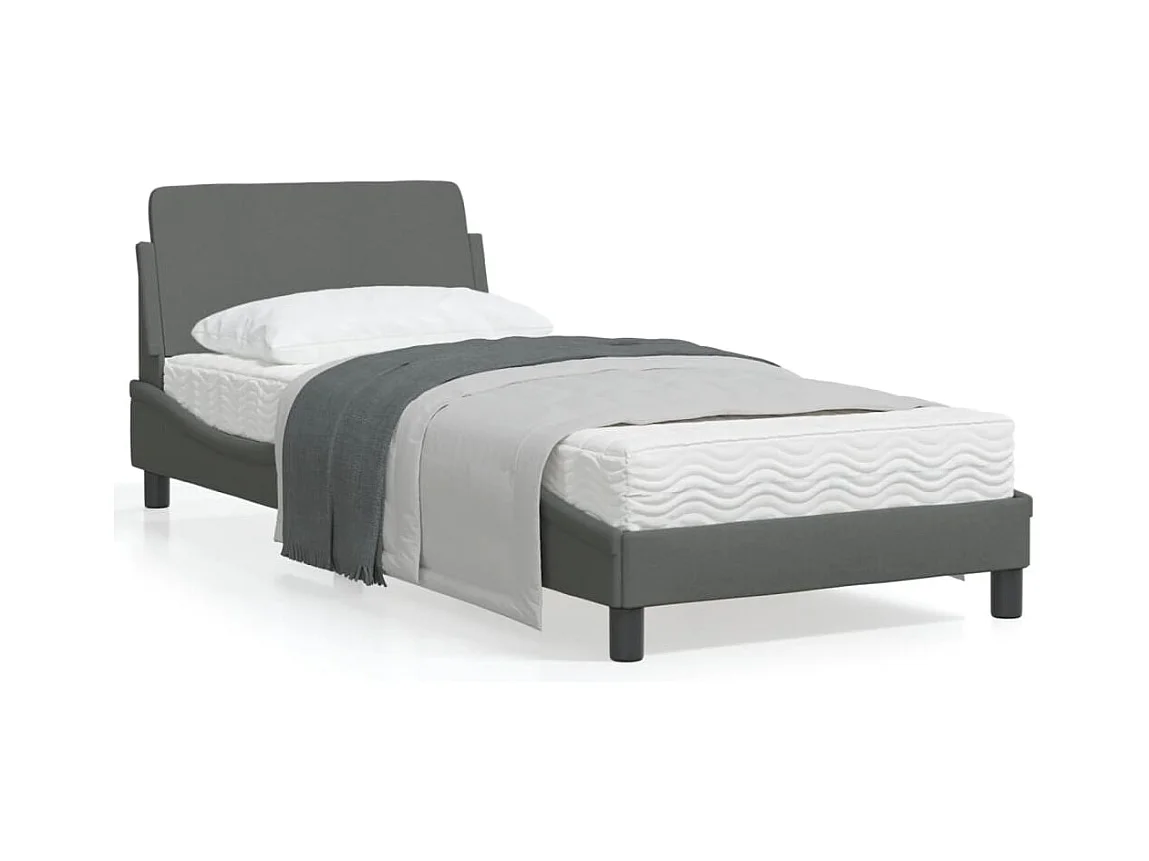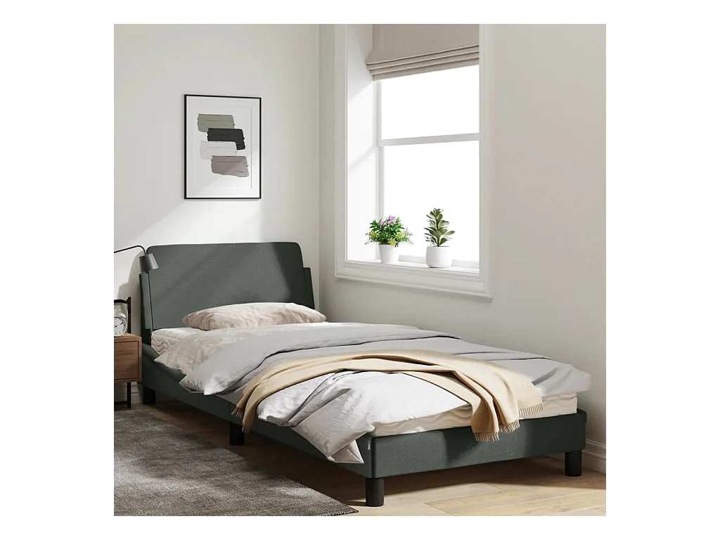 Cadre de lit avec tête de lit Gris foncé 90x200 Tissu