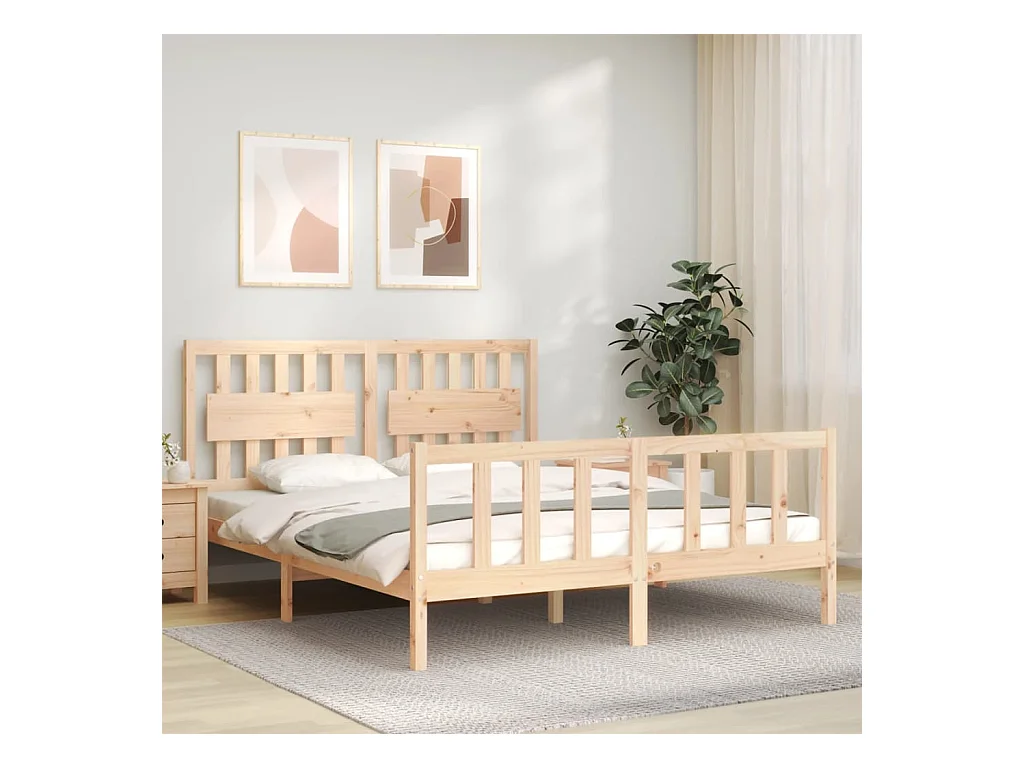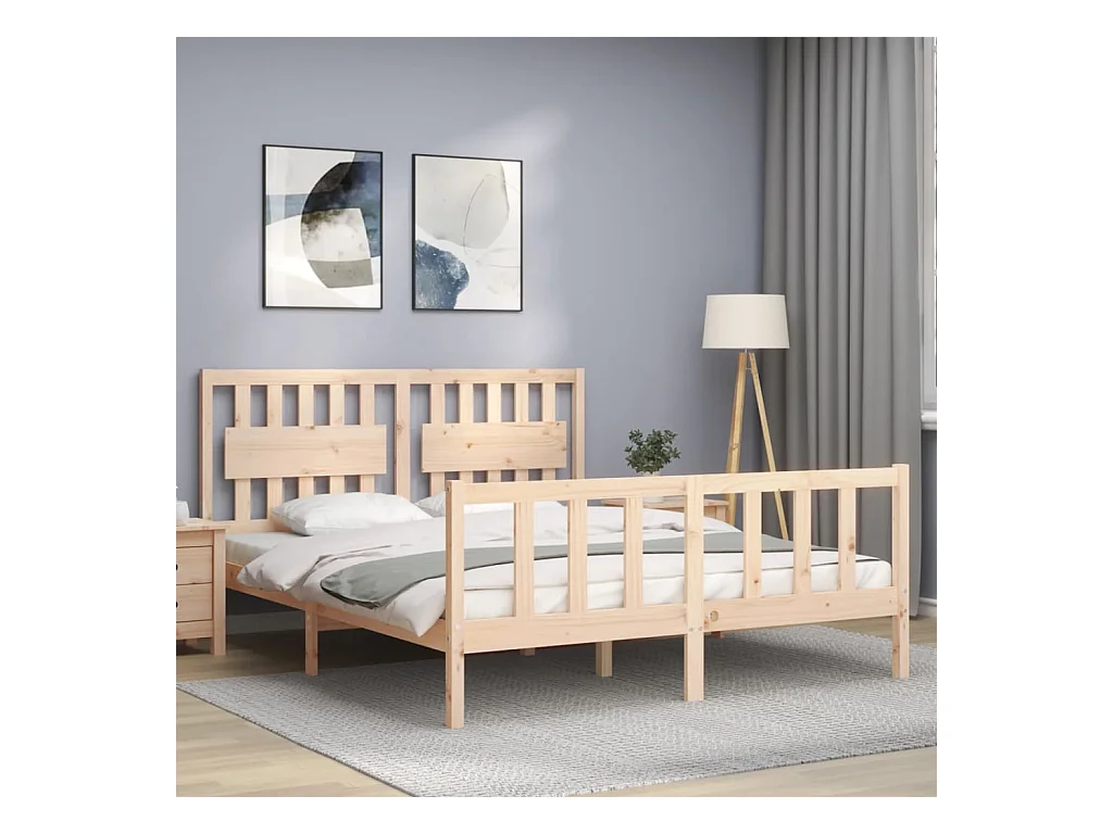 Cadre de lit avec tête de lit king size bois massif