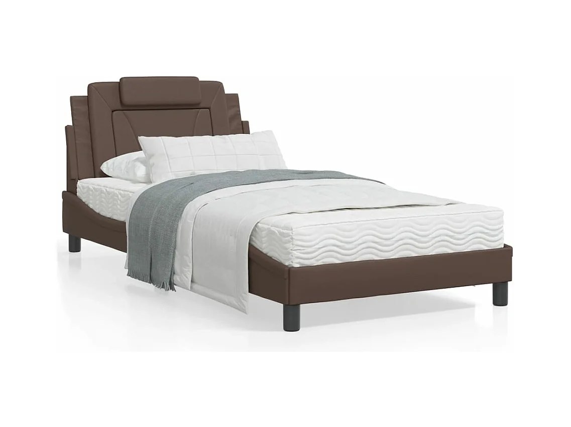 Cadre de lit avec tête de lit Marron 100x200 Similicuir