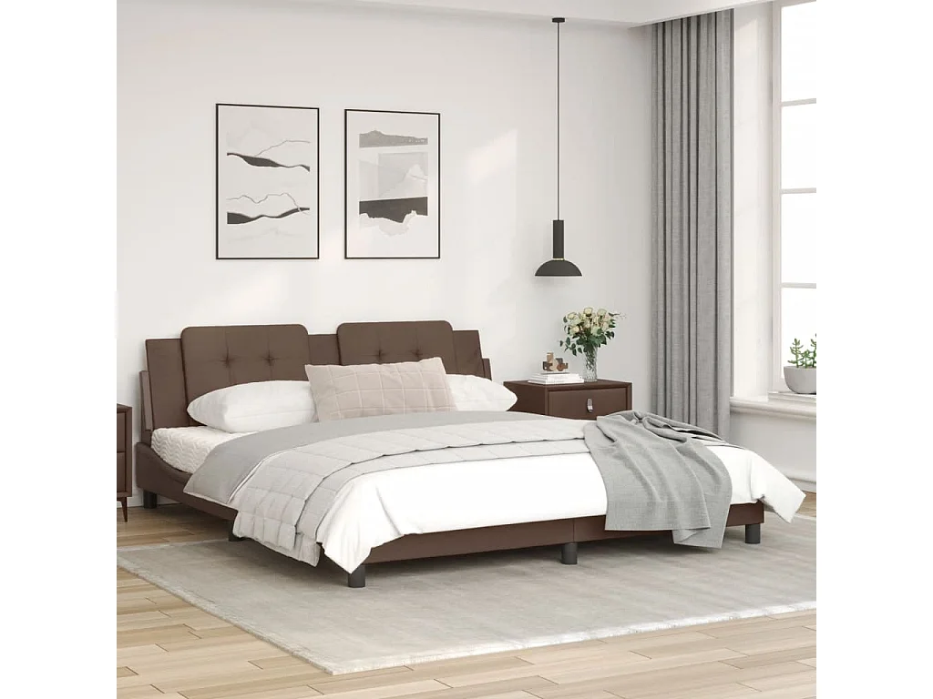 Cadre de lit avec tête de lit marron 180x200 Similicuir