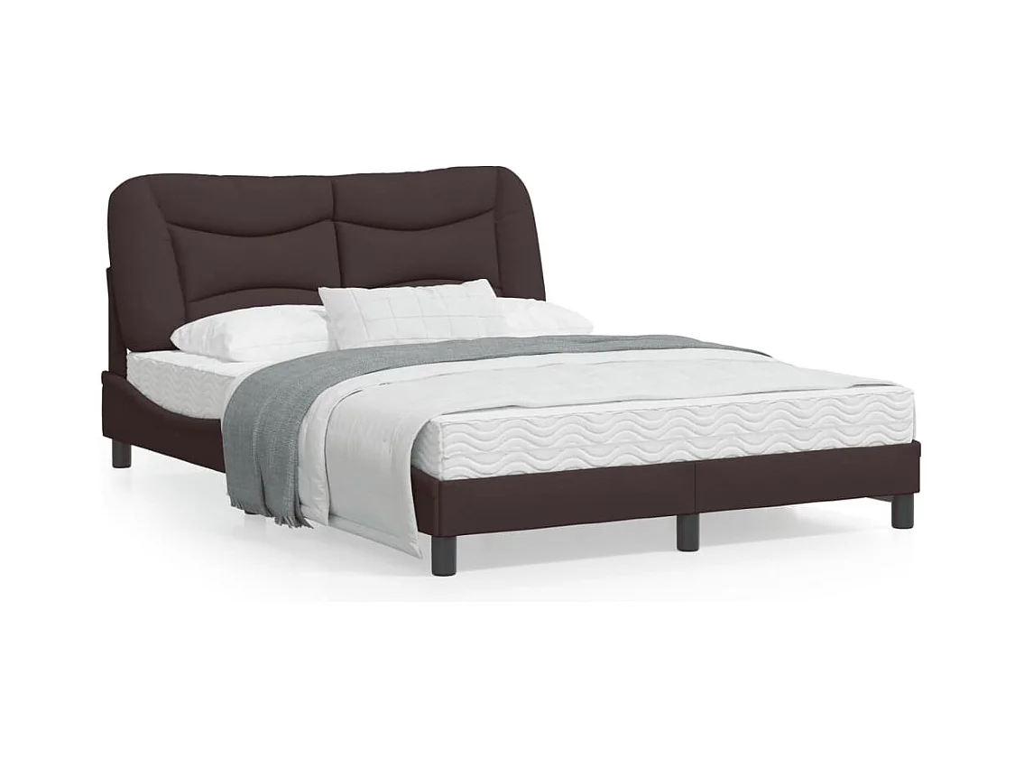 Cadre de lit avec tête de lit Marron foncé 140x190 Tissu