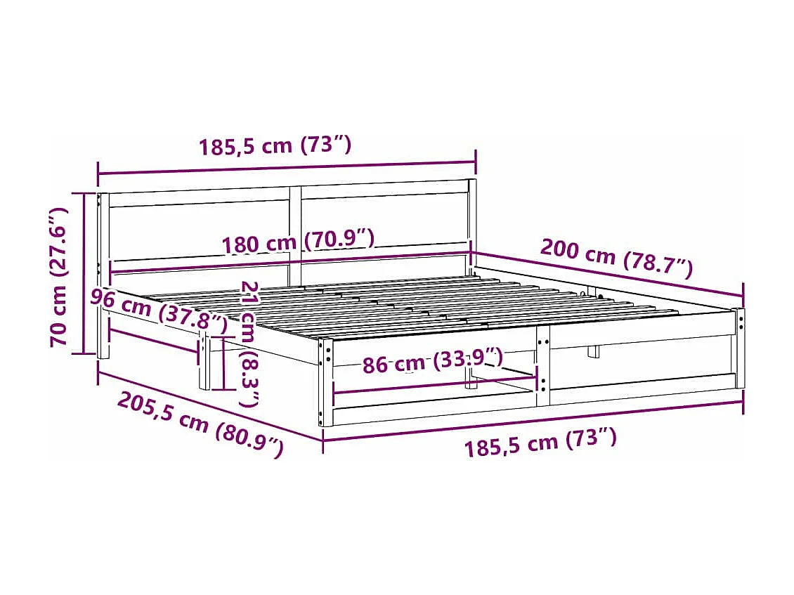 Cadre de lit Marron 180 x 200 cm Bois de pin massif
