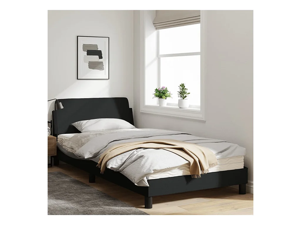 Cadre de lit avec tête de lit Noir 100x200 Tissu