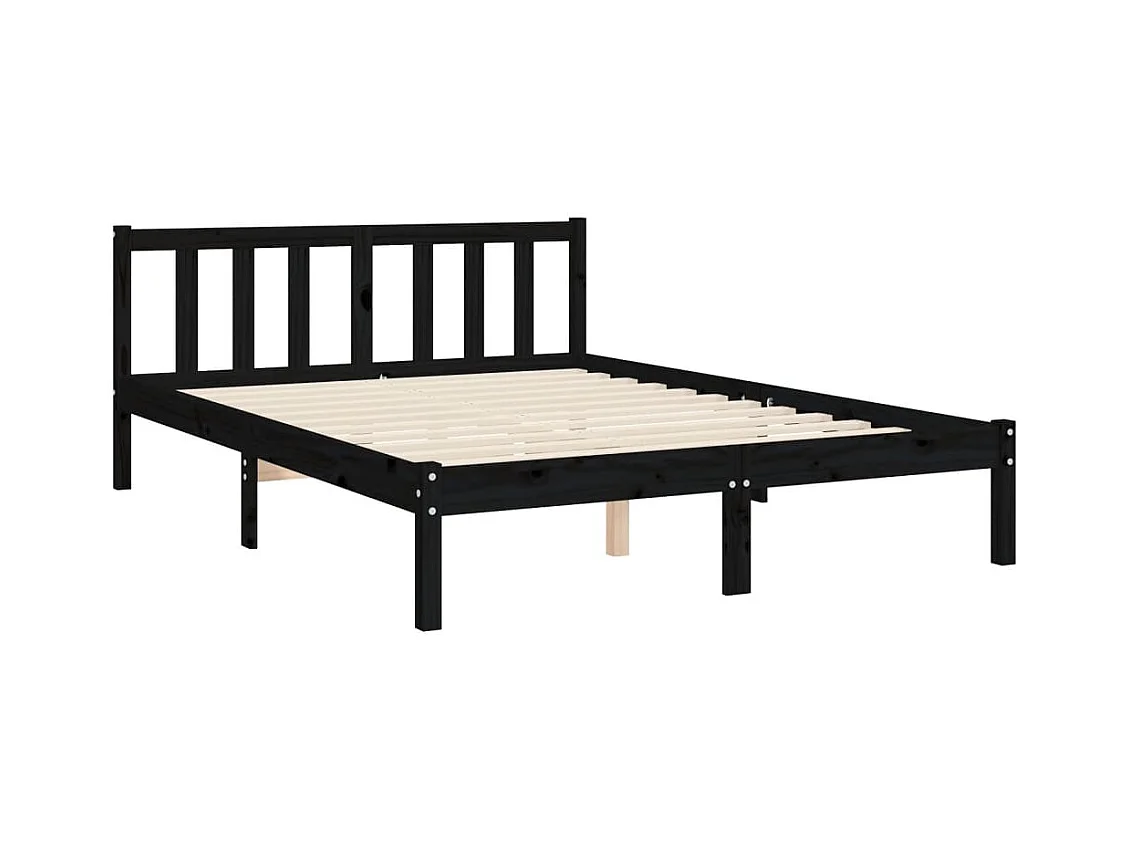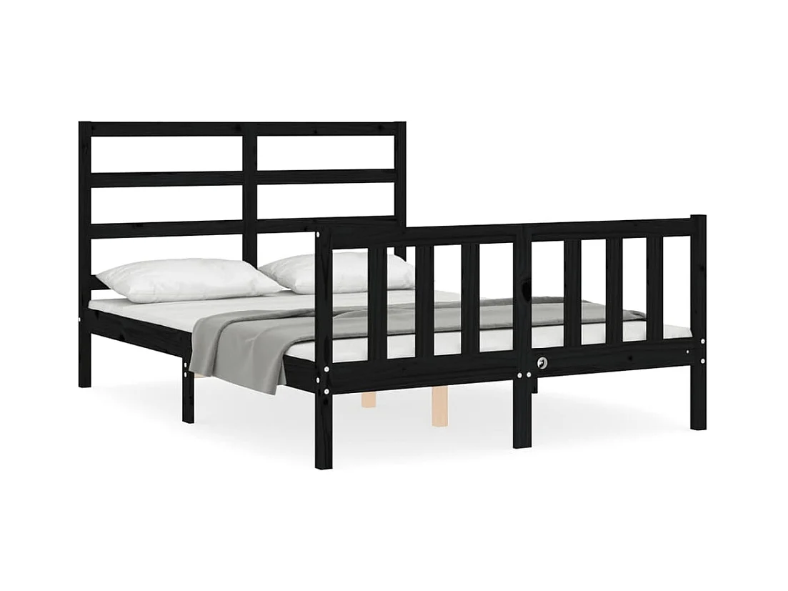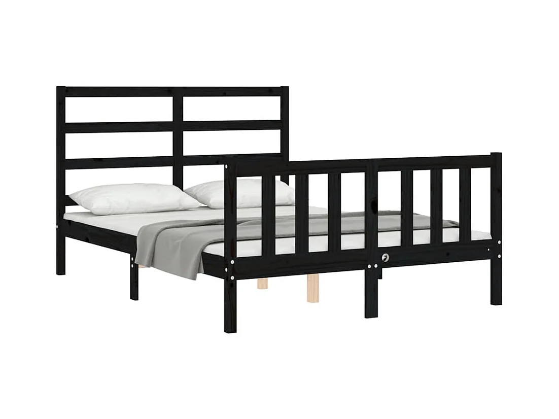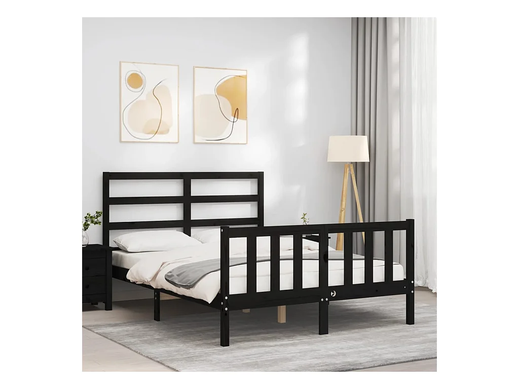 Cadre de lit avec tête de lit noir 140x190 bois massif