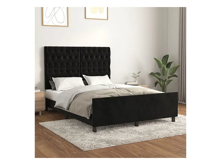 Cadre de lit avec tête de lit Noir 140x200 Velours