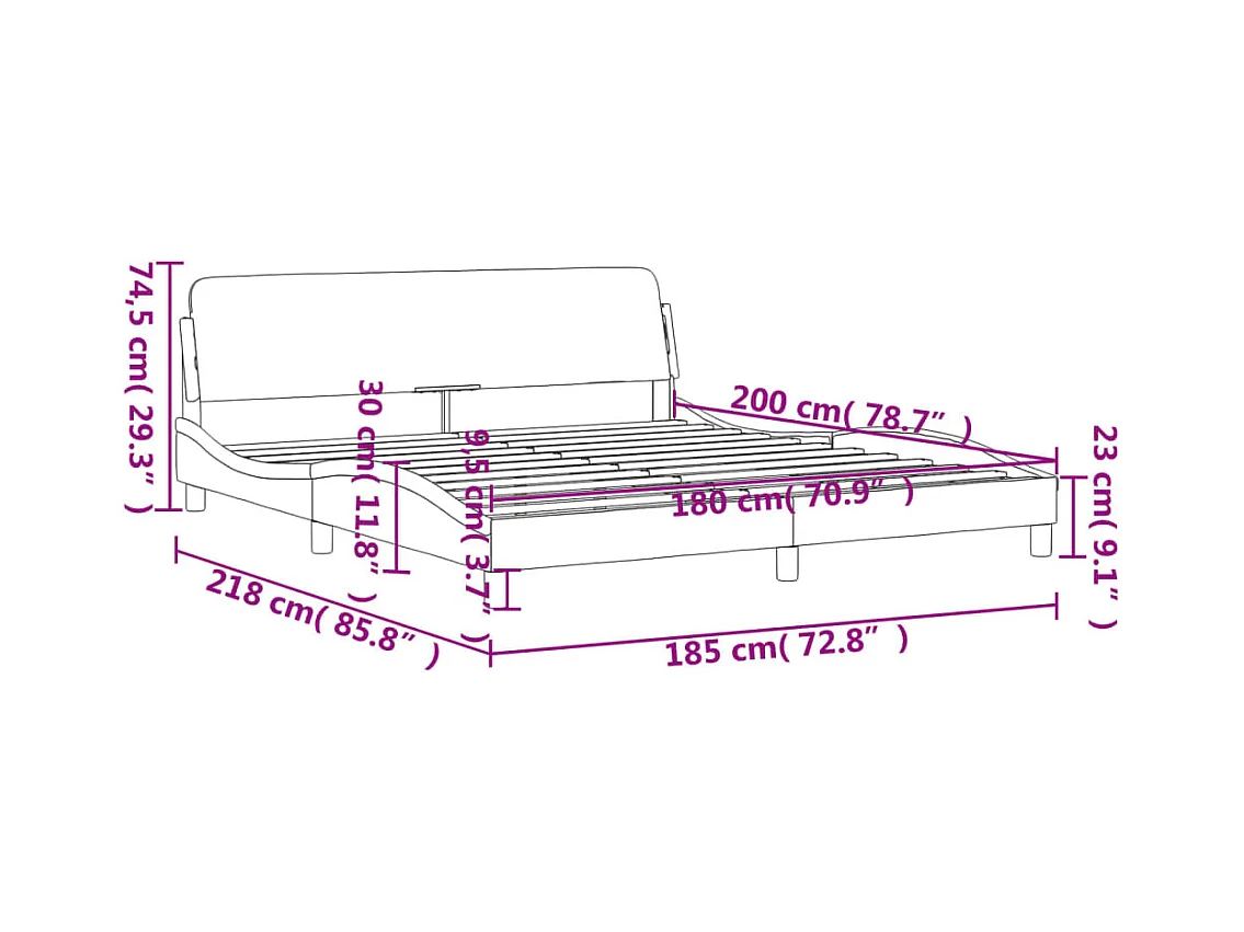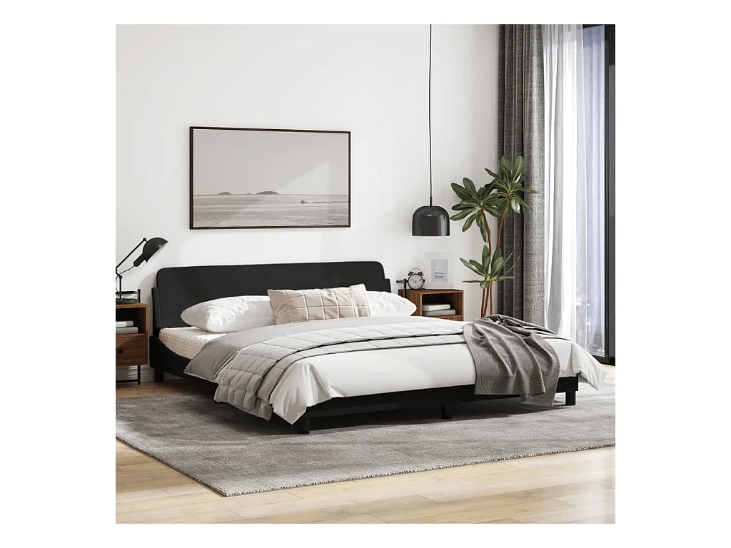 Cadre de lit avec tête de lit Noir 180x200 Tissu