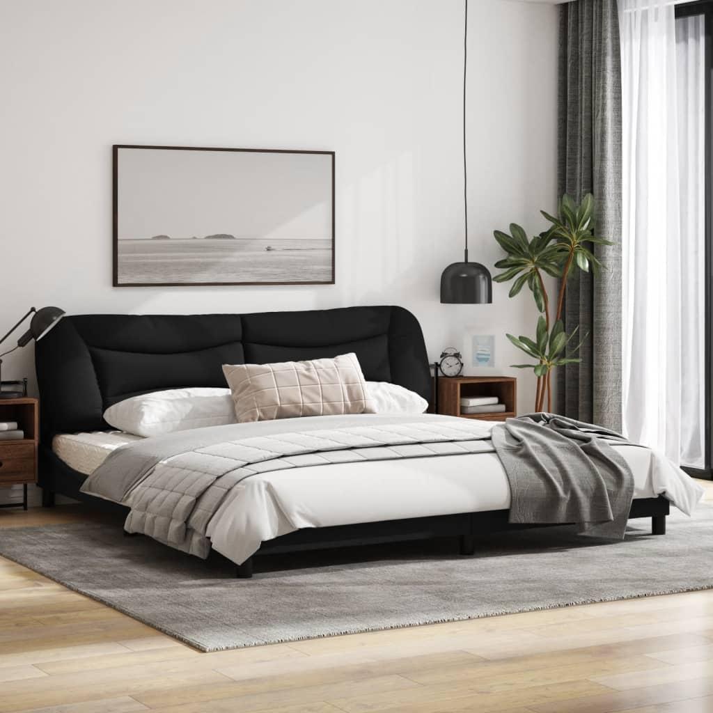 Cadre de lit avec tête de lit Noir 200x200 Tissu