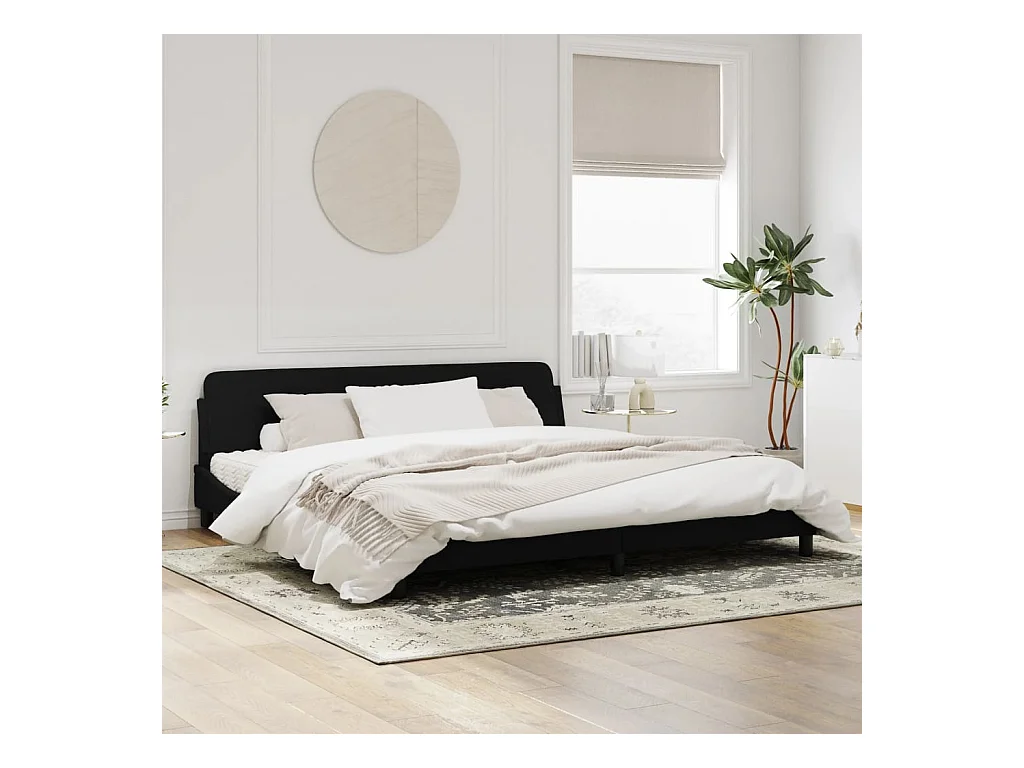 Cadre de lit avec tête de lit Noir 200x200 Velours