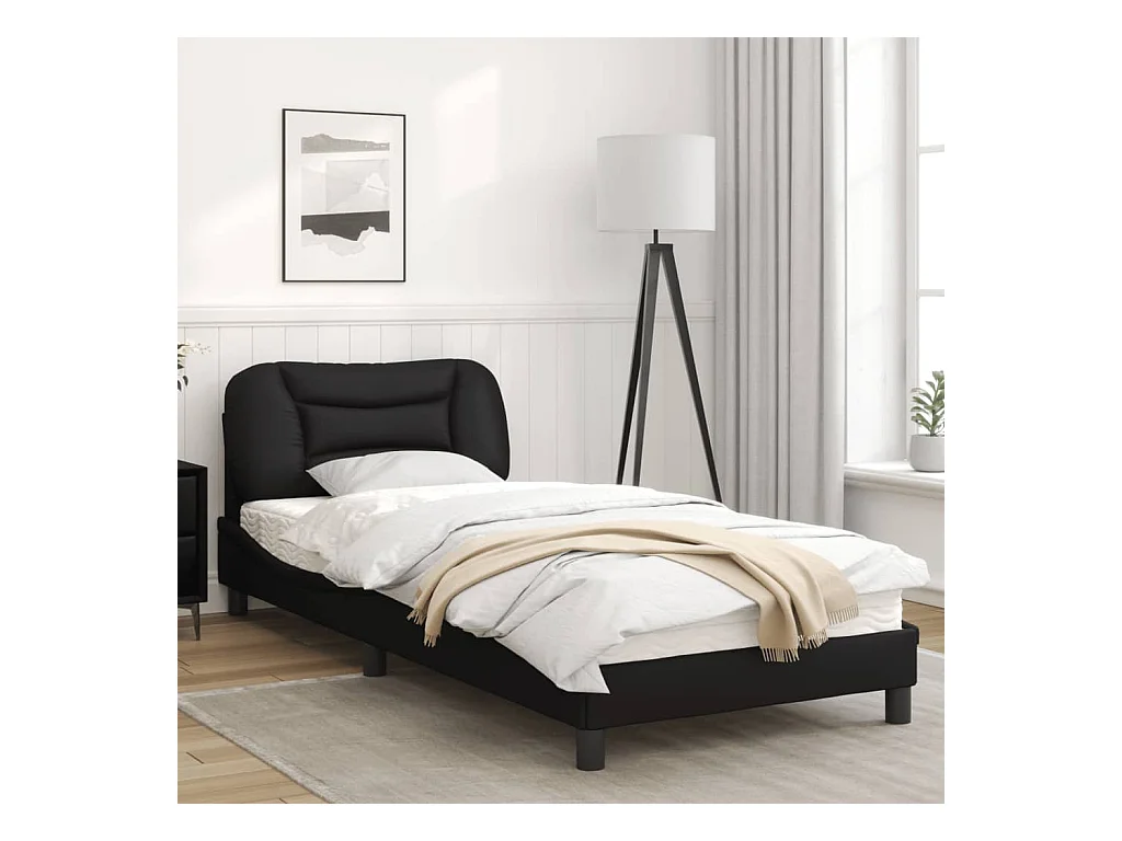 Cadre de lit avec tête de lit Noir 80x200 Similicuir