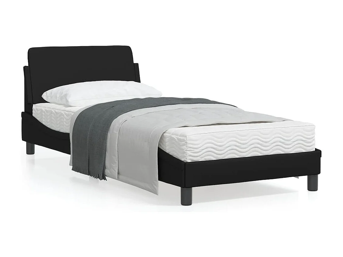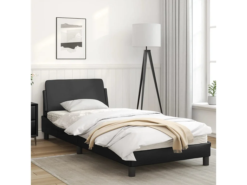 Cadre de lit avec tête de lit Noir 90x200 Similicuir