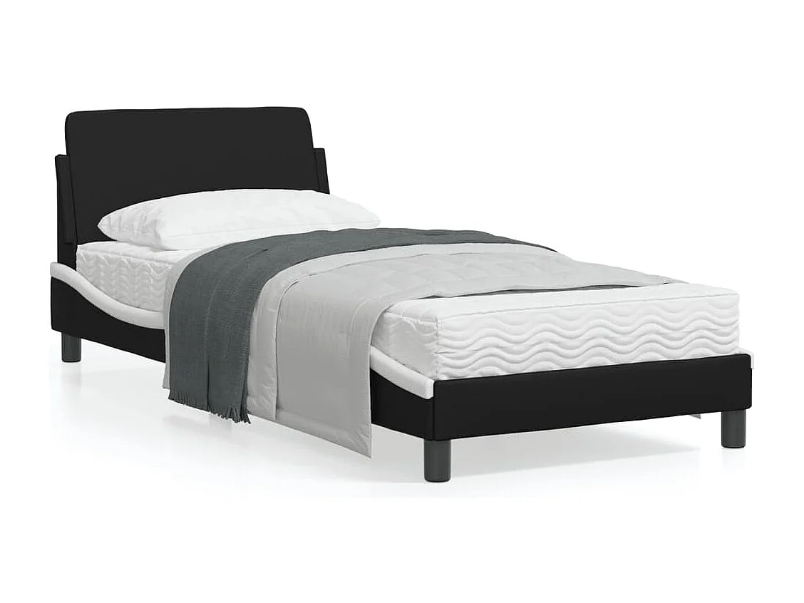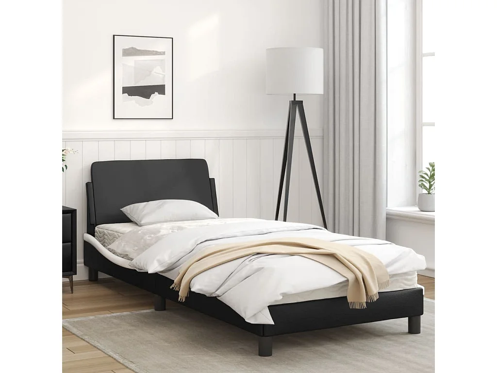 Cadre de lit avec tête de lit noir et blanc 90x190 similicuir