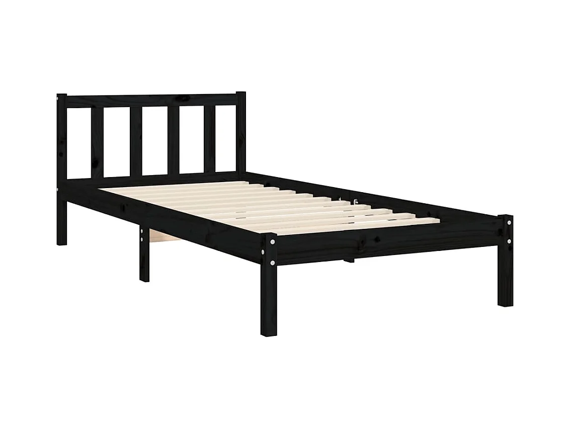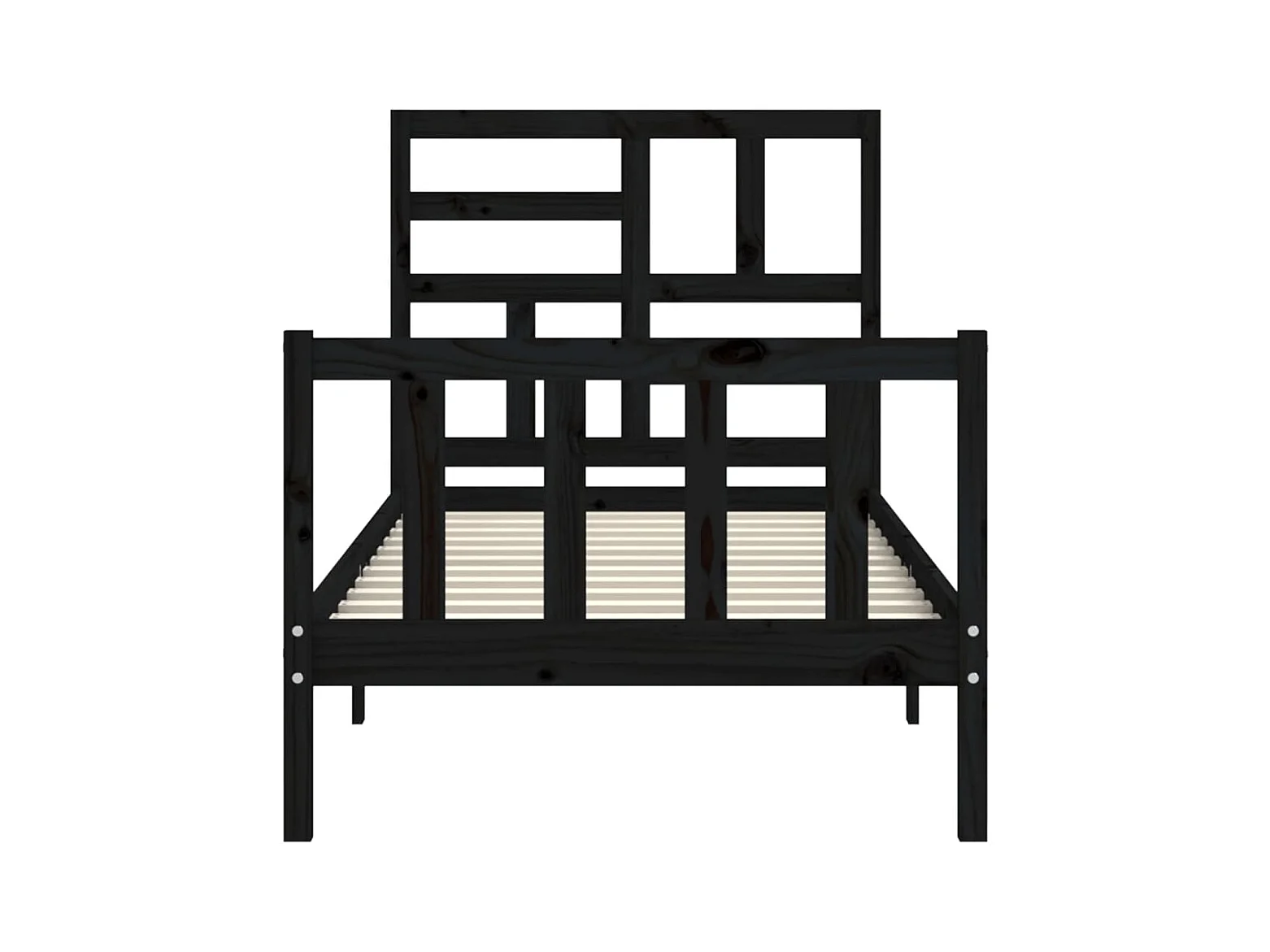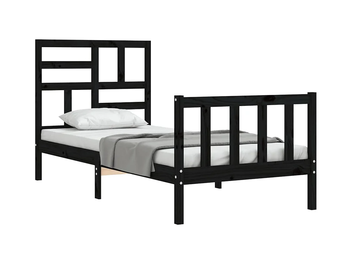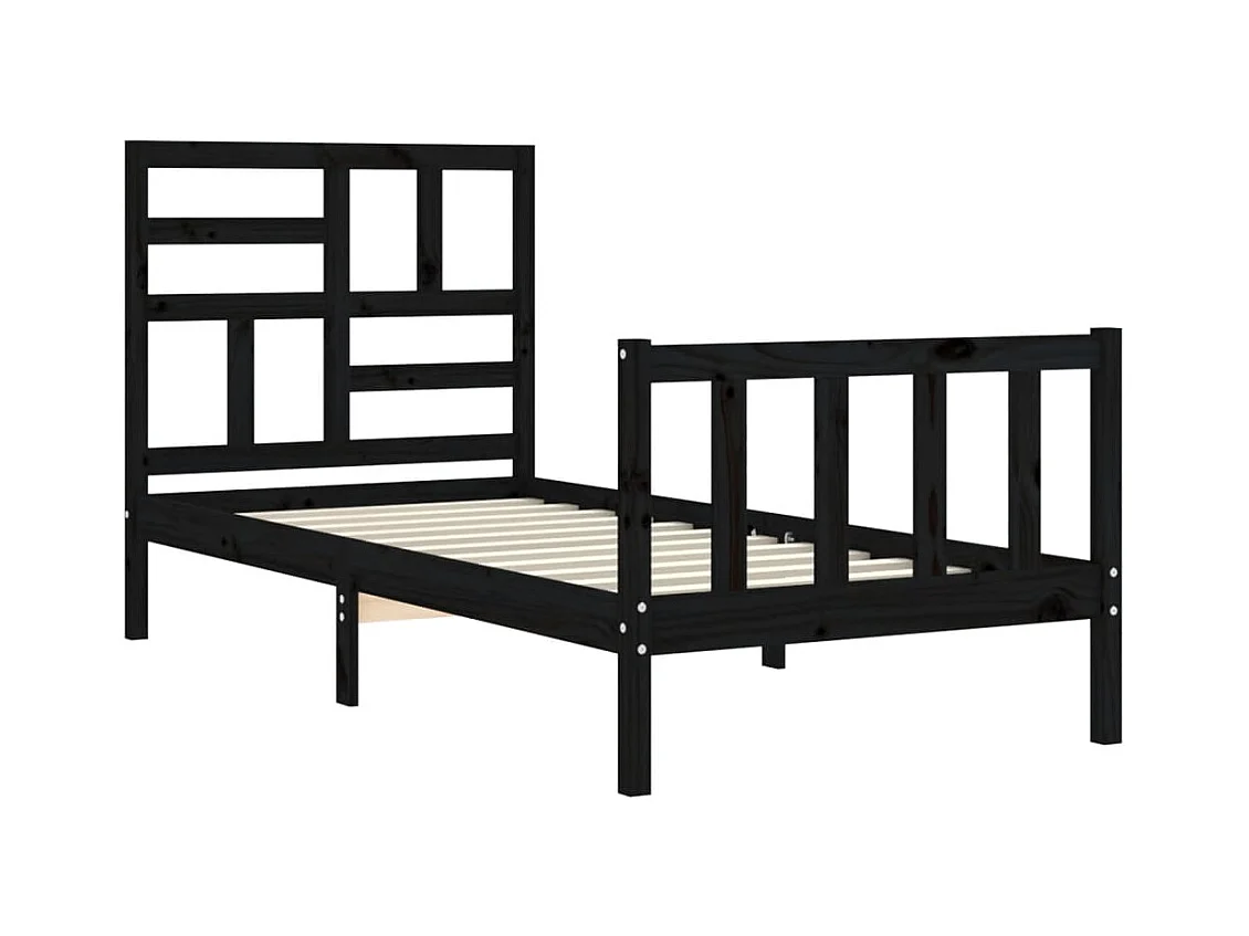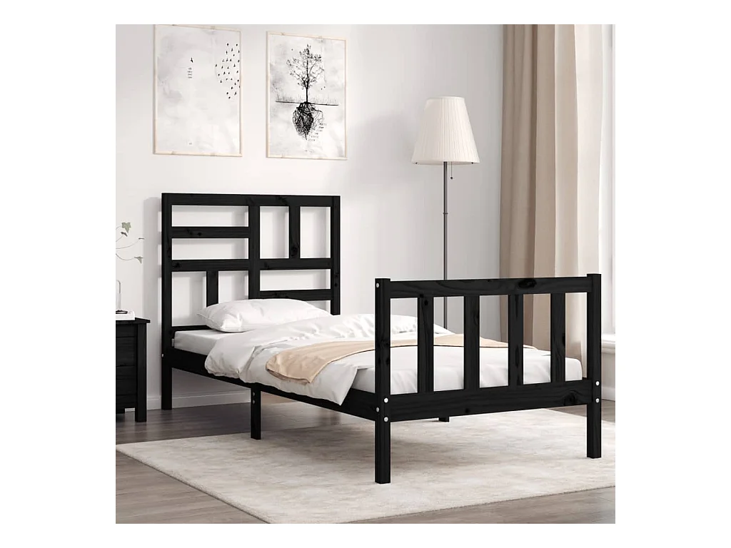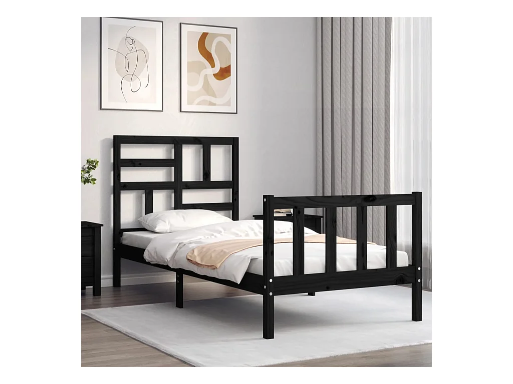Cadre de lit avec tête de lit noir petit simple bois massif
