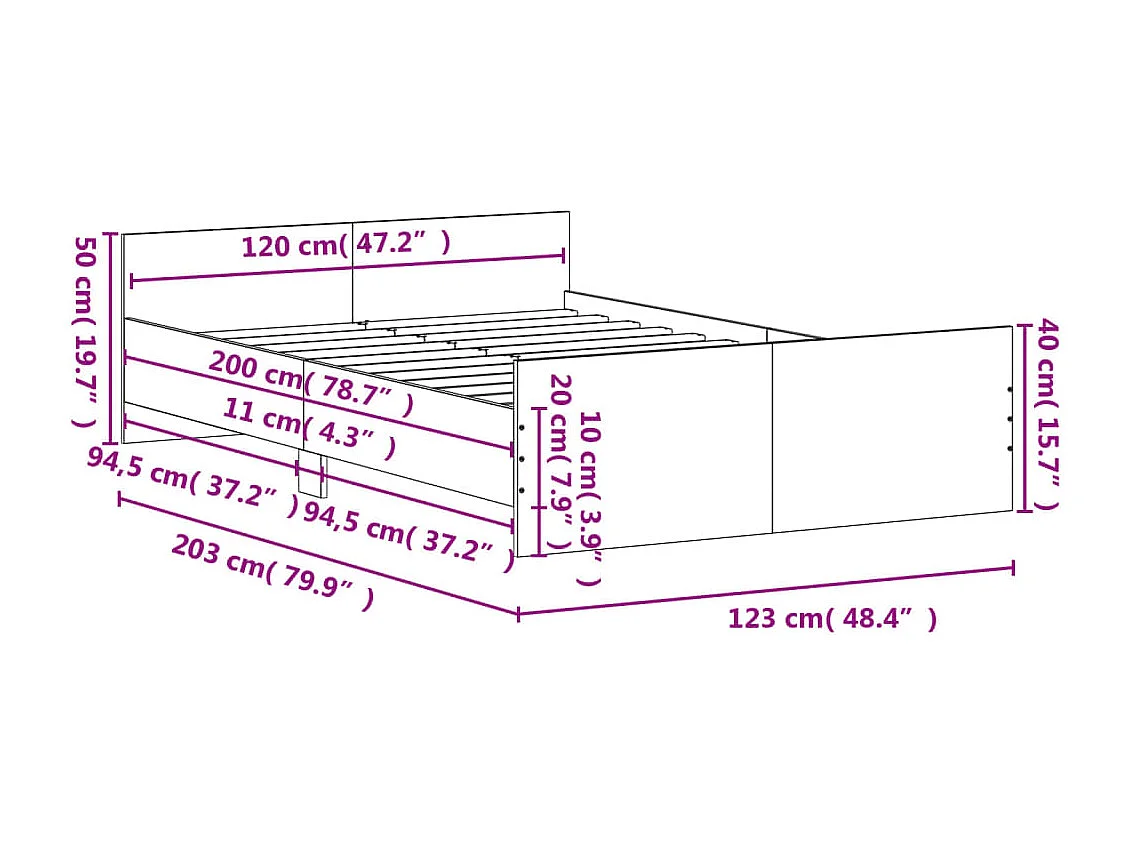 Cadre de lit avec tête de lit-pied de lit noir 120x200