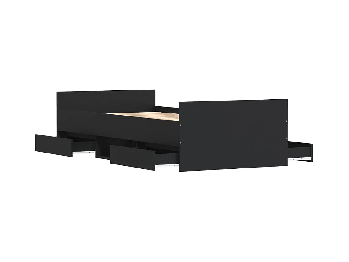 Cadre de lit avec tête de lit-pied de lit noir 90x200