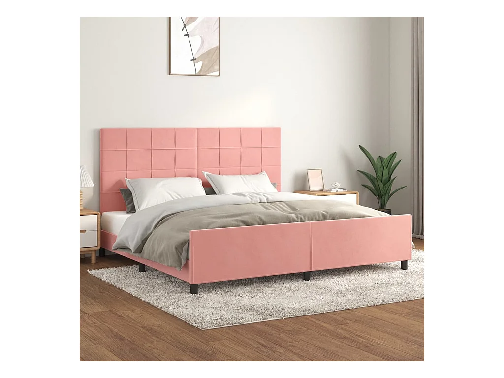 Cadre de lit avec tête de lit Rose 200x200 Velours