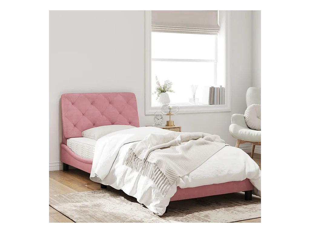 Cadre de lit avec tête de lit Rose 80x200 Velours