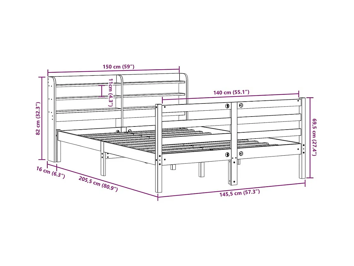 Cadre de lit avec tête de lit sans matelas blanc 140x200 cm