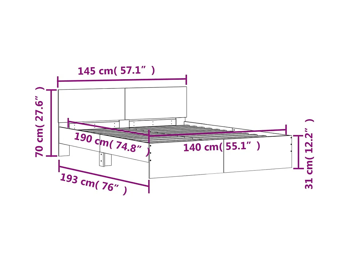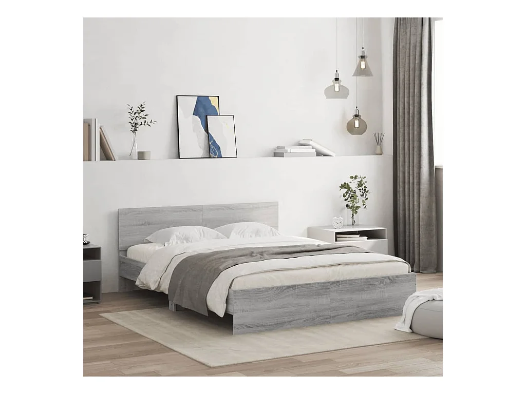 Cadre de lit avec tête de lit sonoma gris 140x190