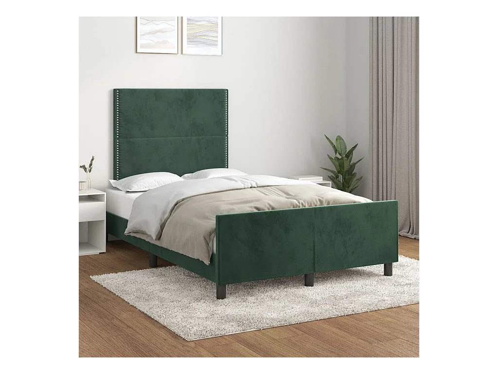 Cadre de lit avec tête de lit vert foncé 120x190 velours