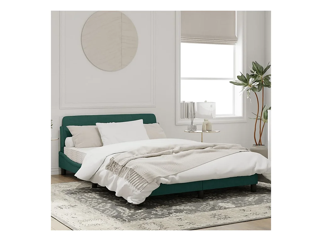 Cadre de lit avec tête de lit Vert foncé 140x190 Velours
