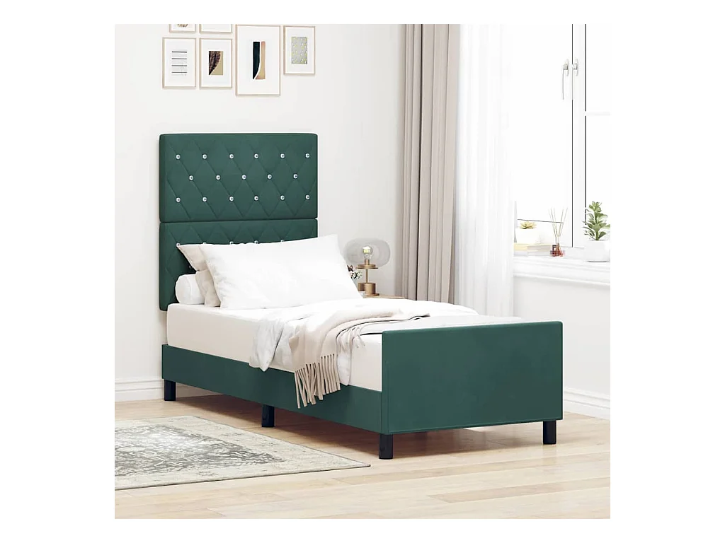 Lit à sommier tapissier et matelas Vert foncé 80x200 Velours 3