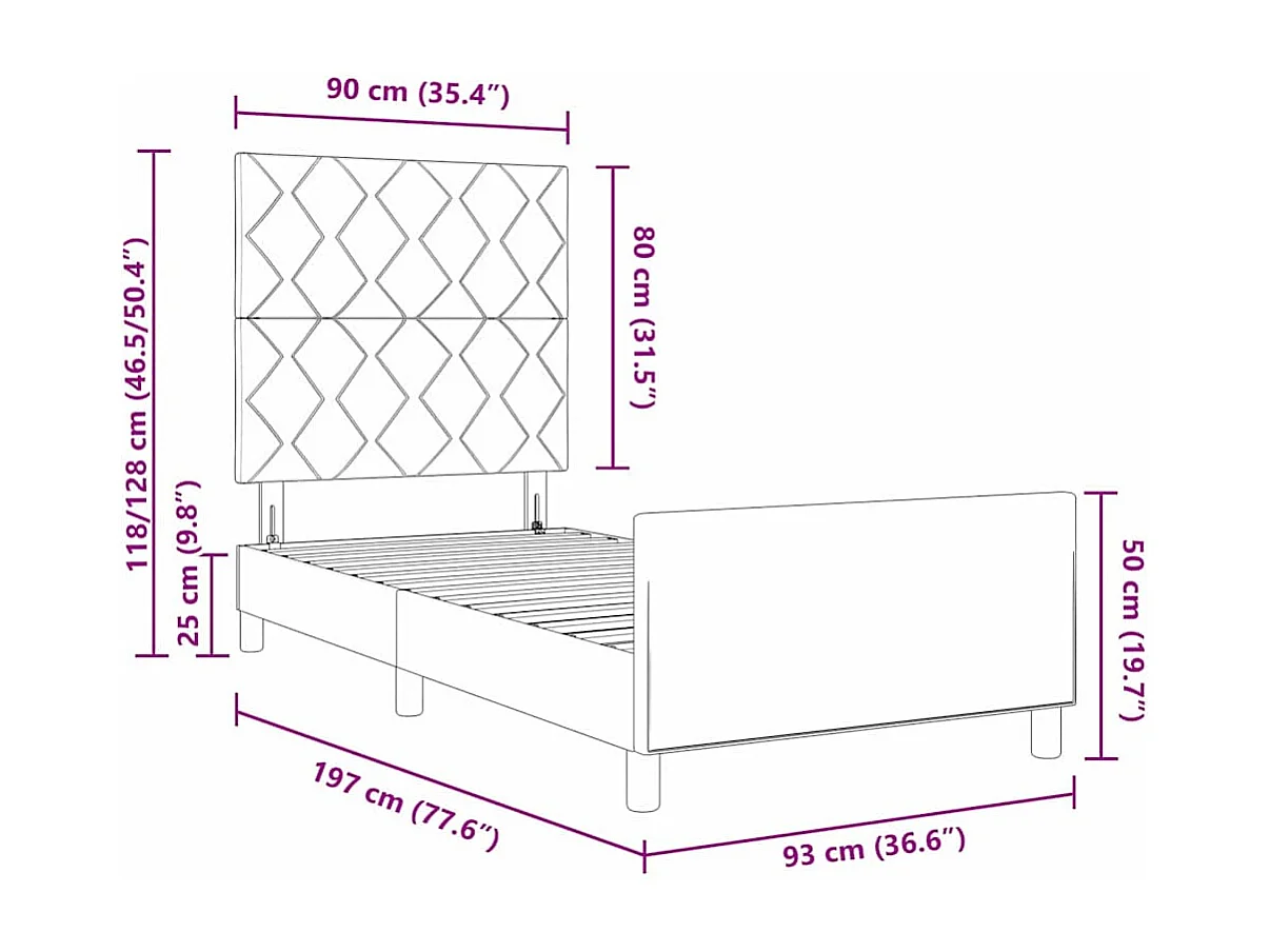 Cadre de lit avec tête de lit Vert foncé 90x190 cm Velours