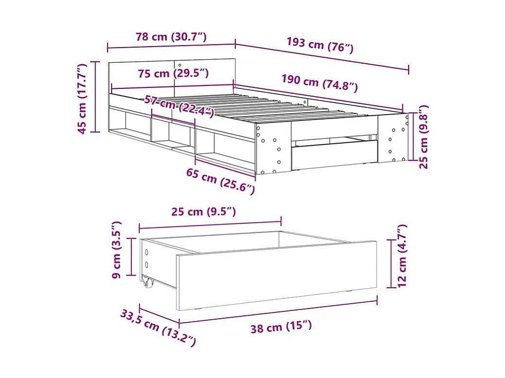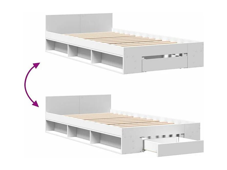 Cadre de lit avec tiroir blanc 75x190 bois d'ingénierie