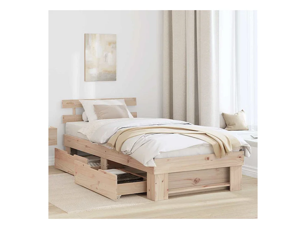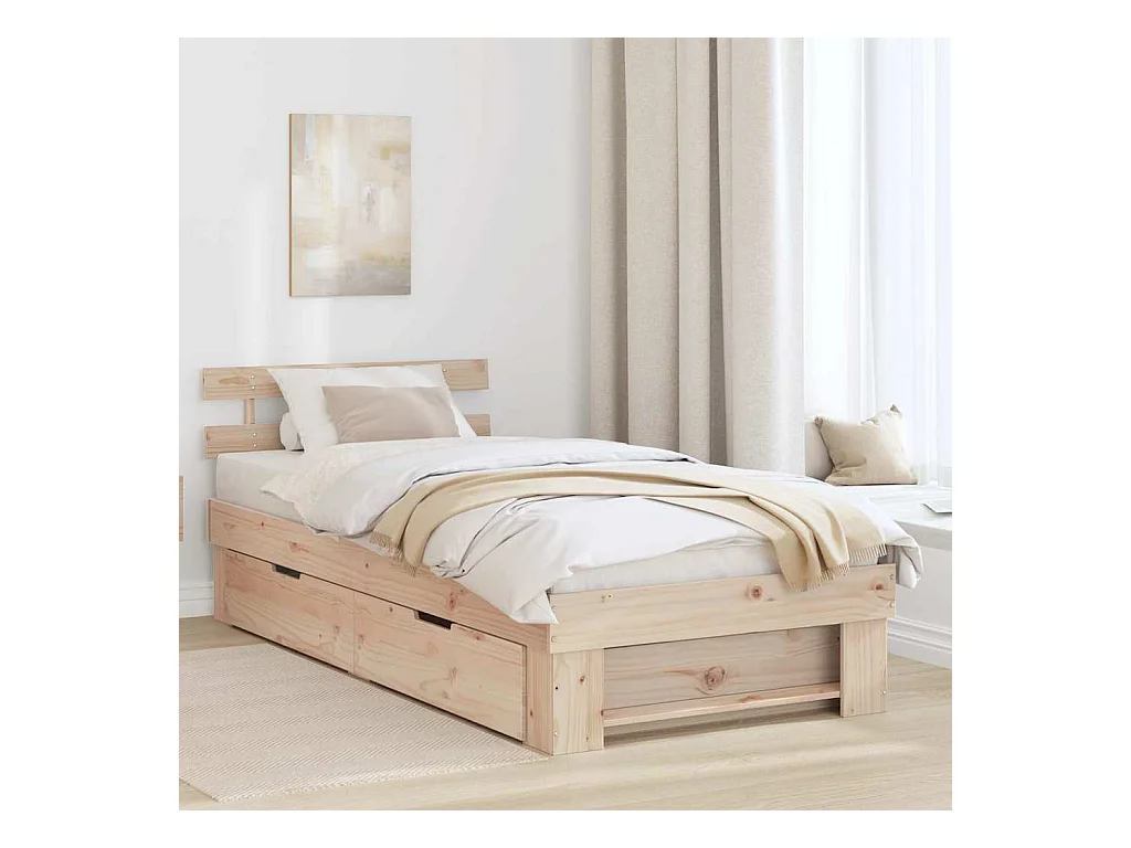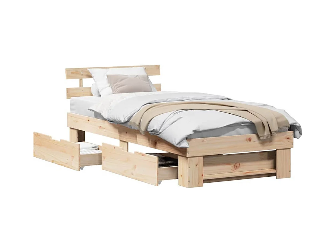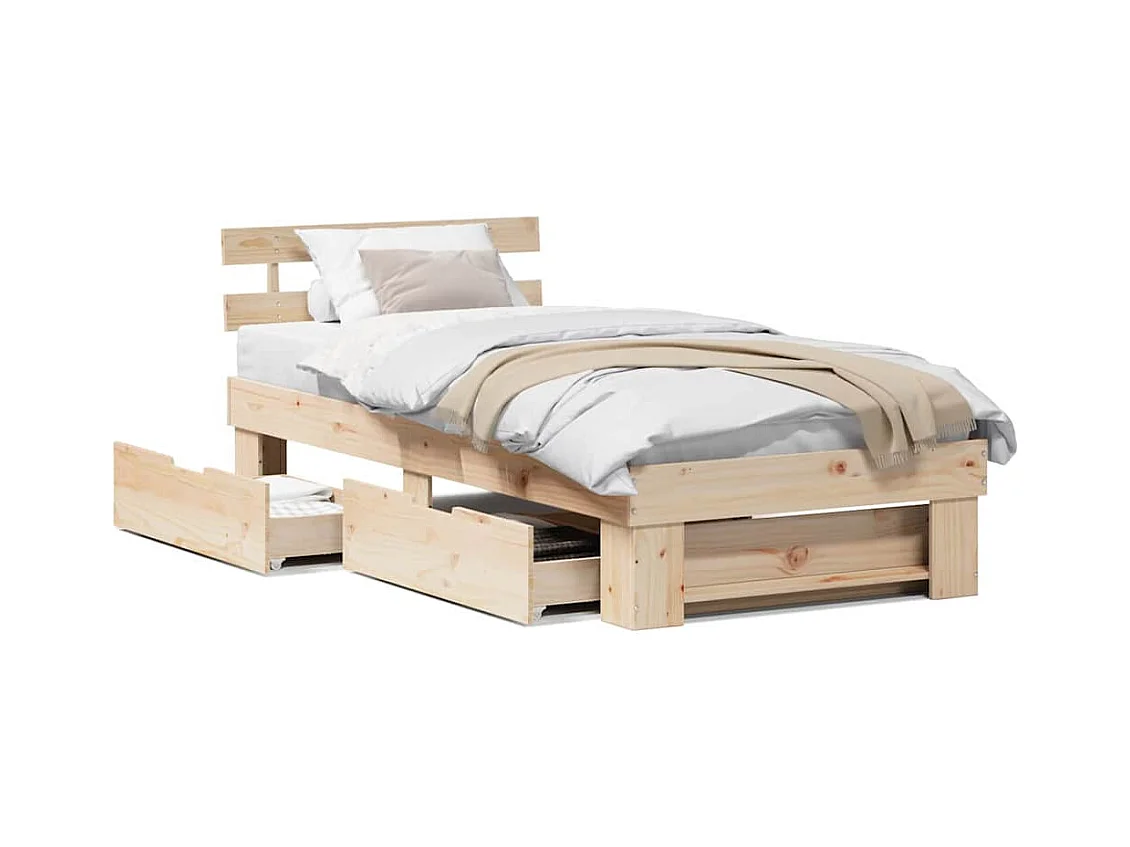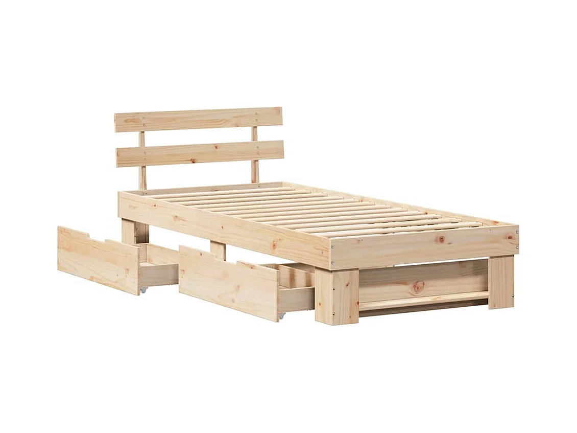 Cadre de lit avec tiroir Marron 90 x 190 cm Bois massif en pin