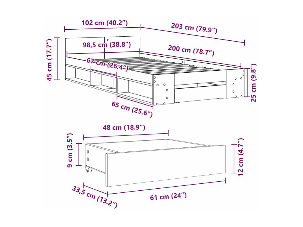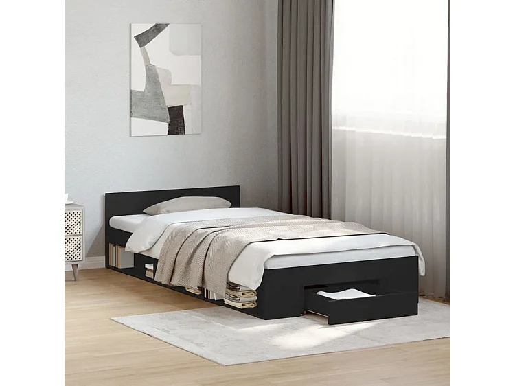 Cadre de lit avec tiroir noir 100x200 bois d'ingénierie