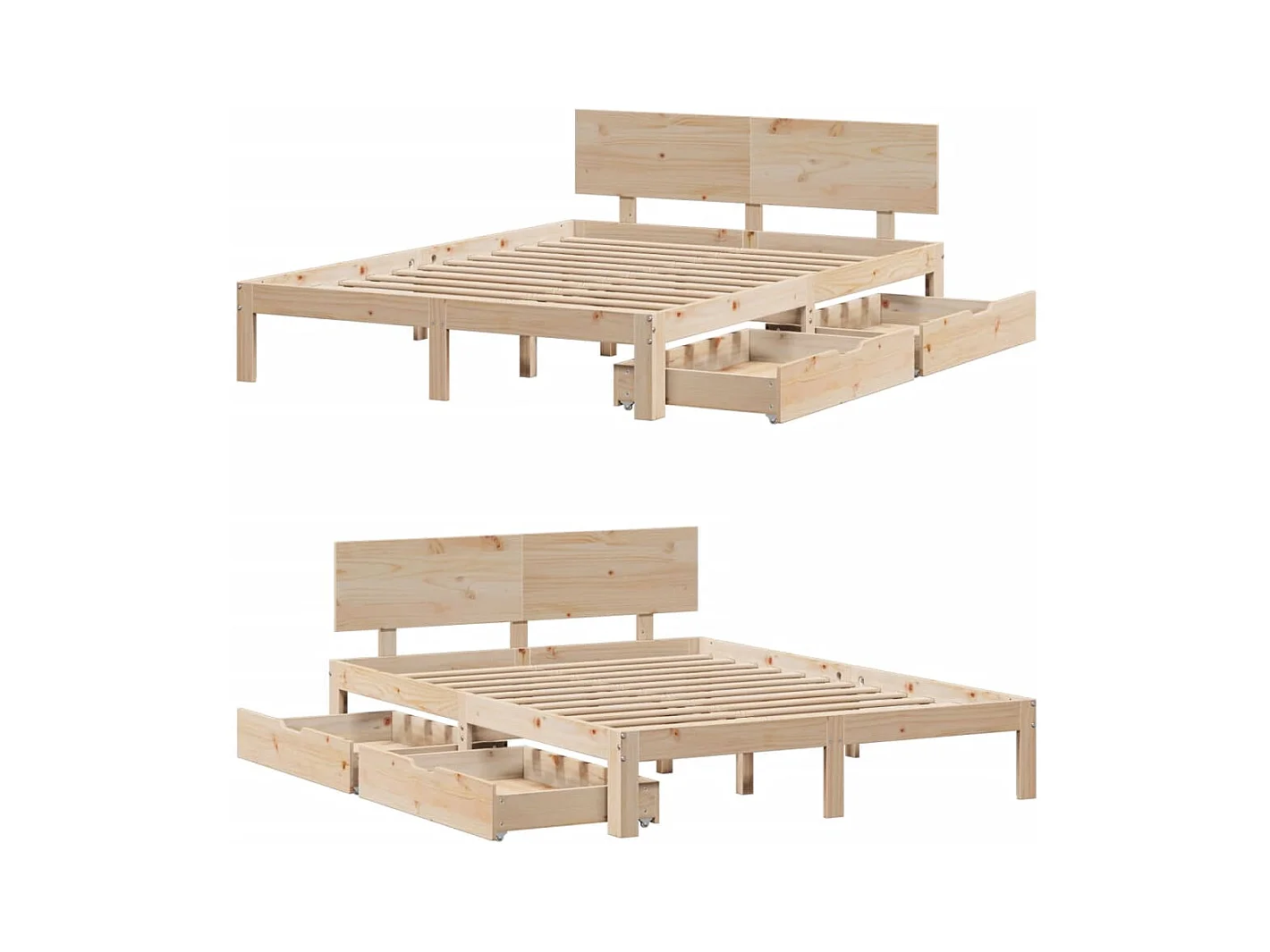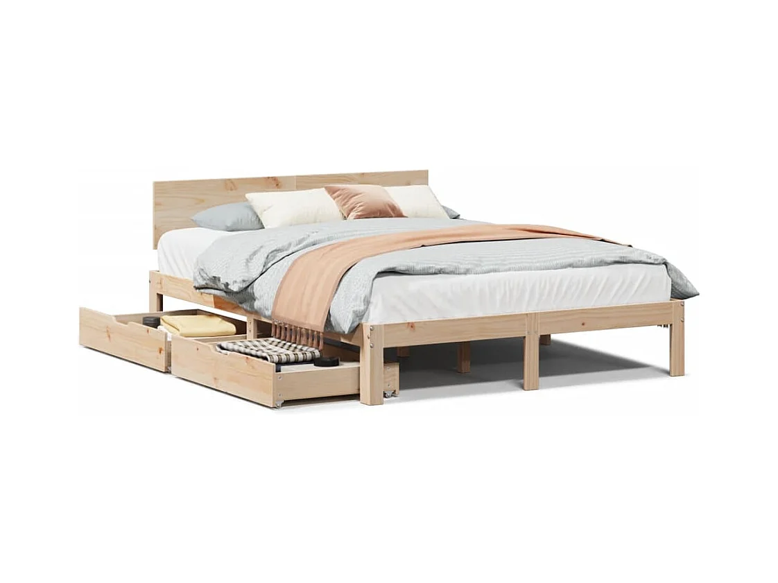Cadre de lit avec tiroirs 135x190 cm Bois de pin massif