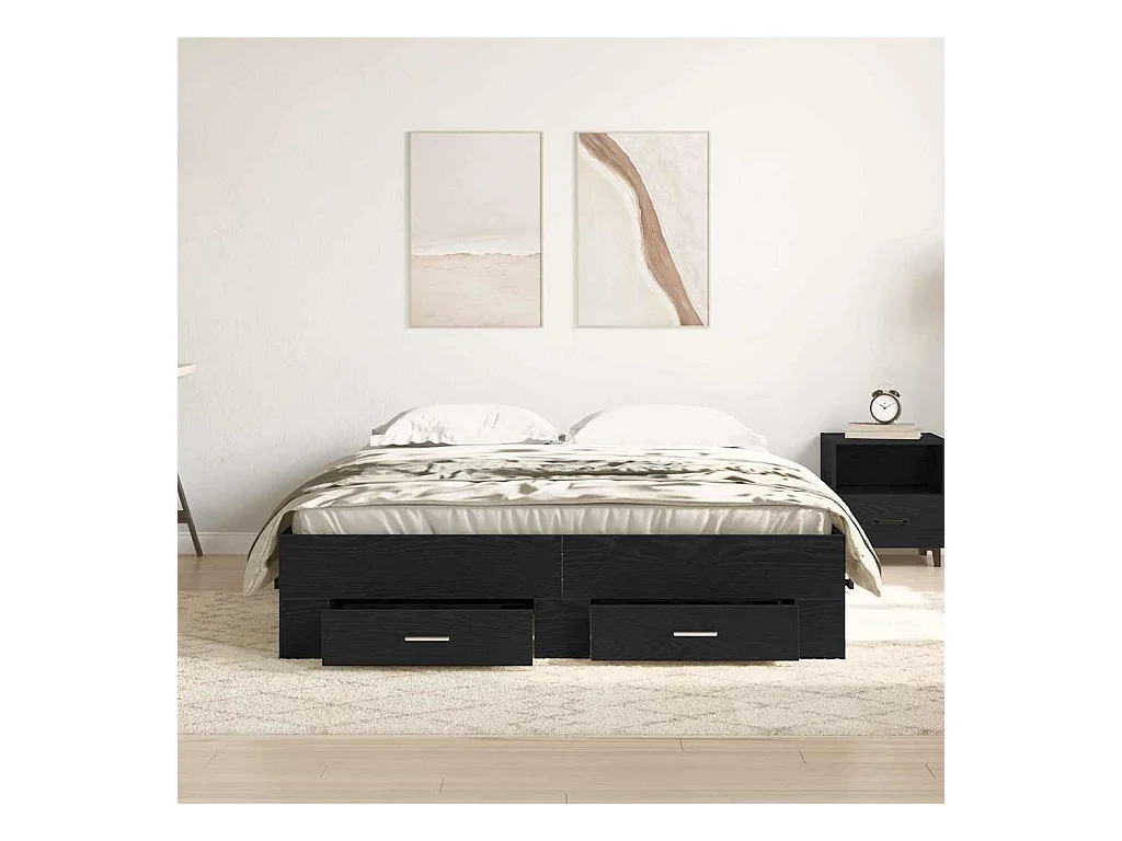 Cadre de lit avec tiroirs avec tiroir Chêne noir 160 x 200 cm