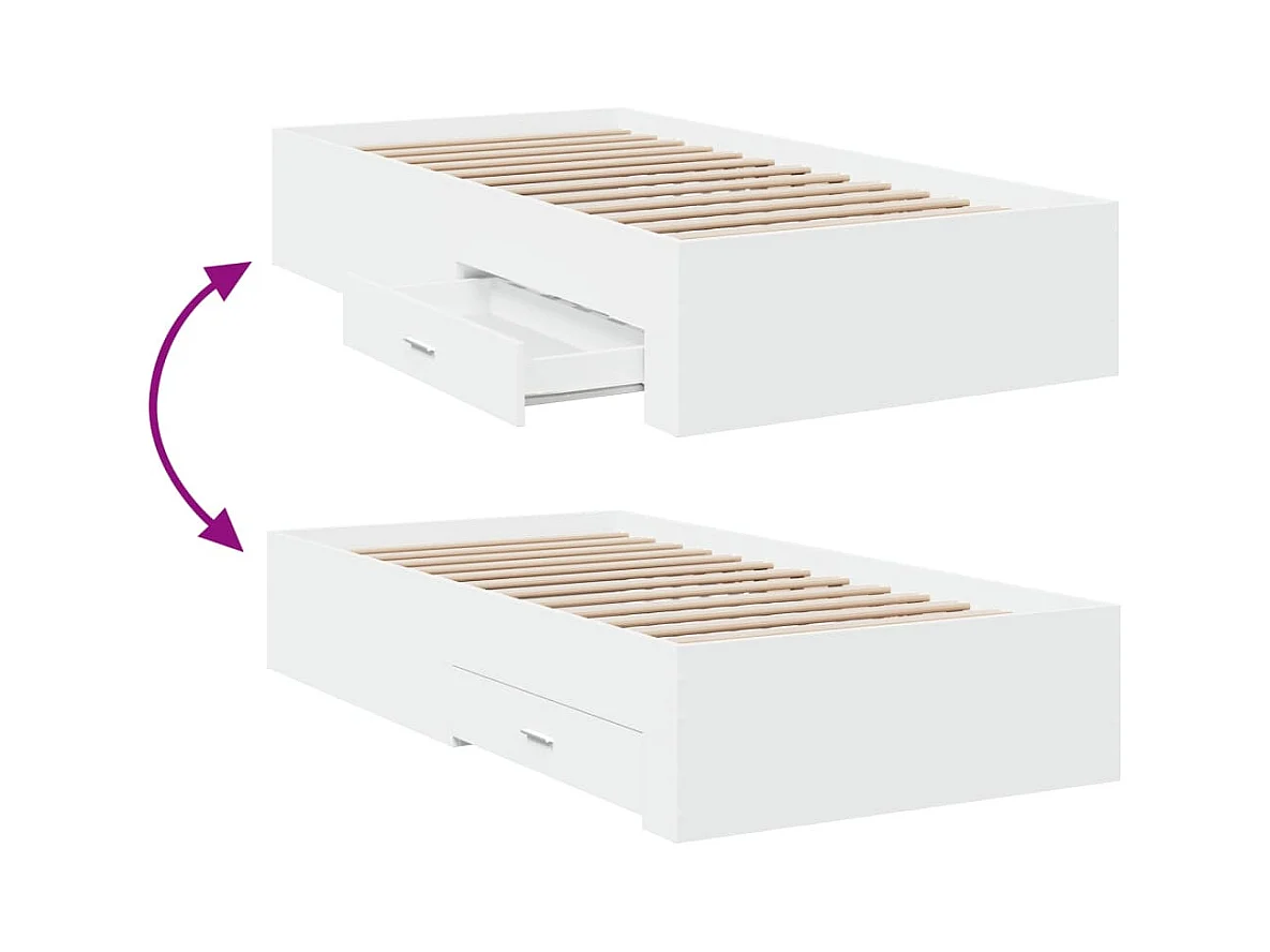 Cadre de lit avec tiroirs blanc 100x200 bois d'ingénierie