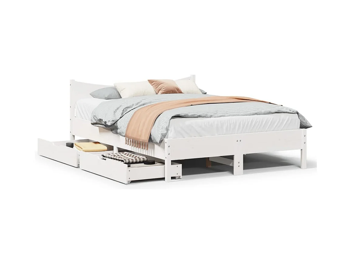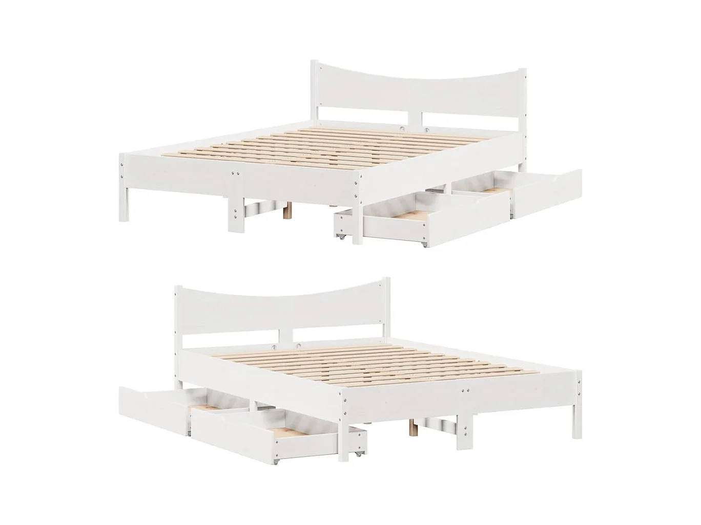 Cadre de lit avec tiroirs blanc 120x190 cm bois pin massif