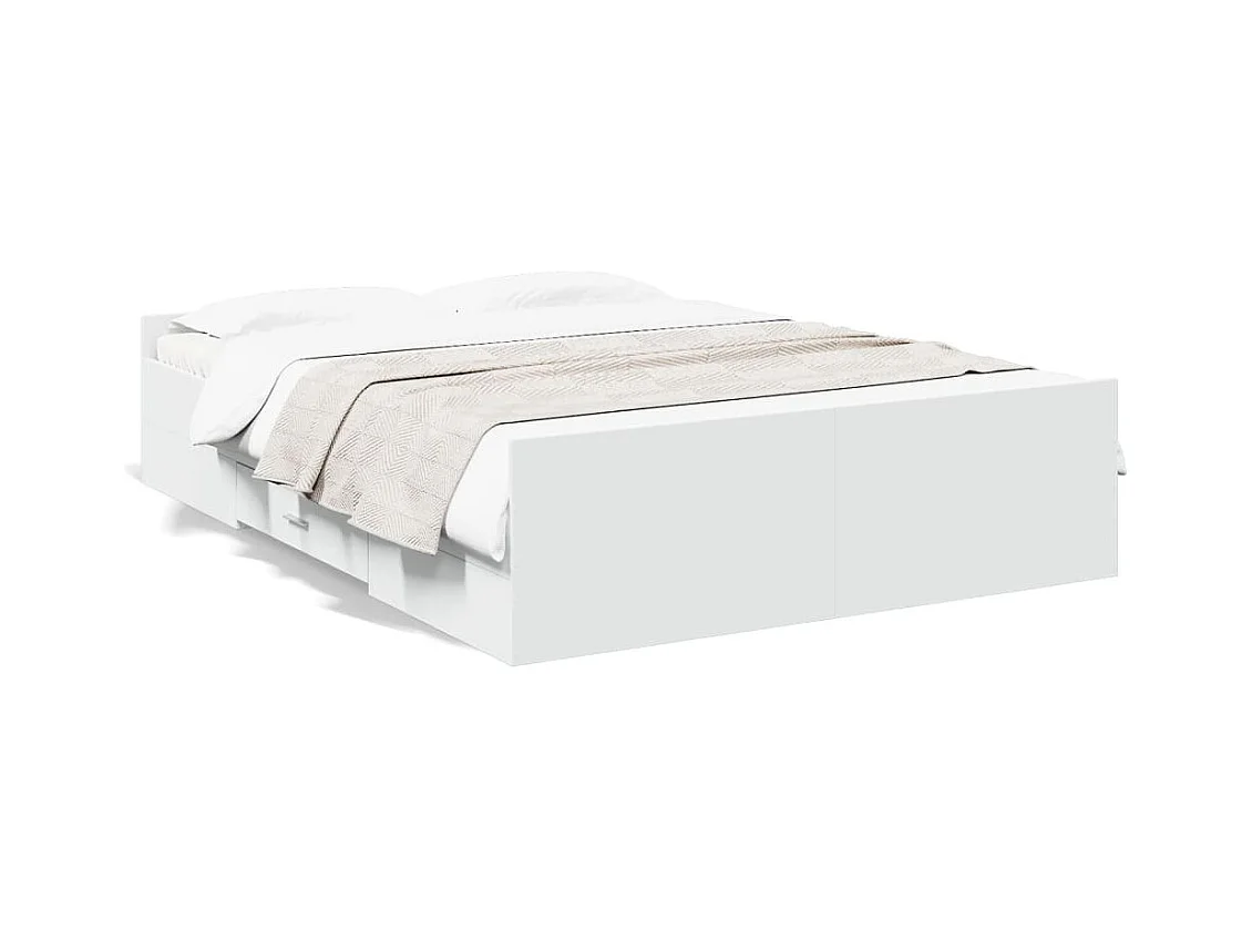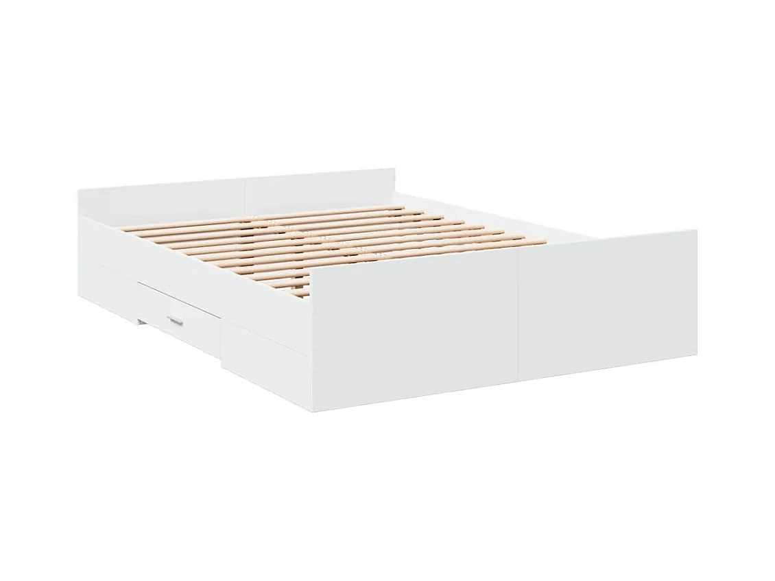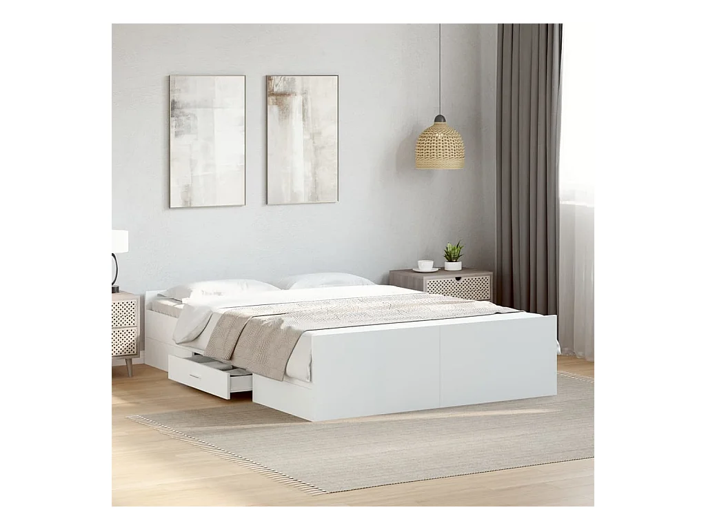 Cadre de lit avec tiroirs blanc 140x190 bois d'ingénierie